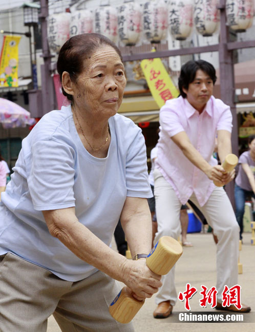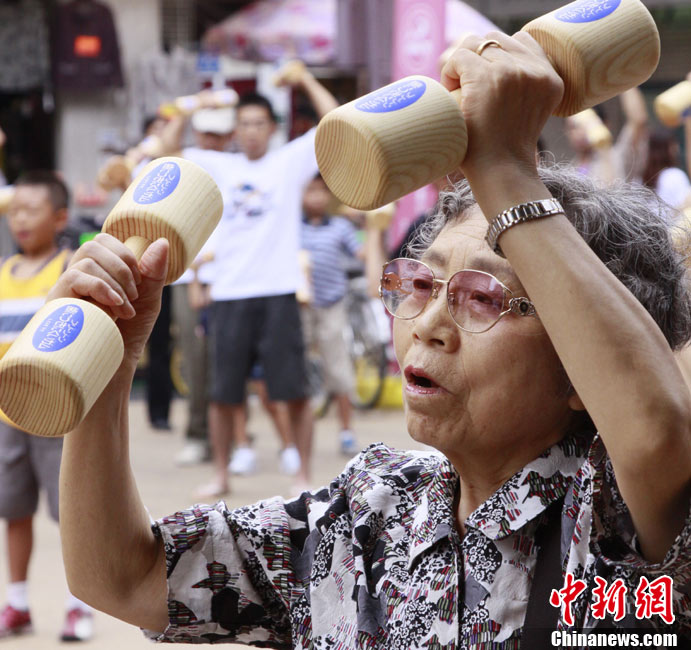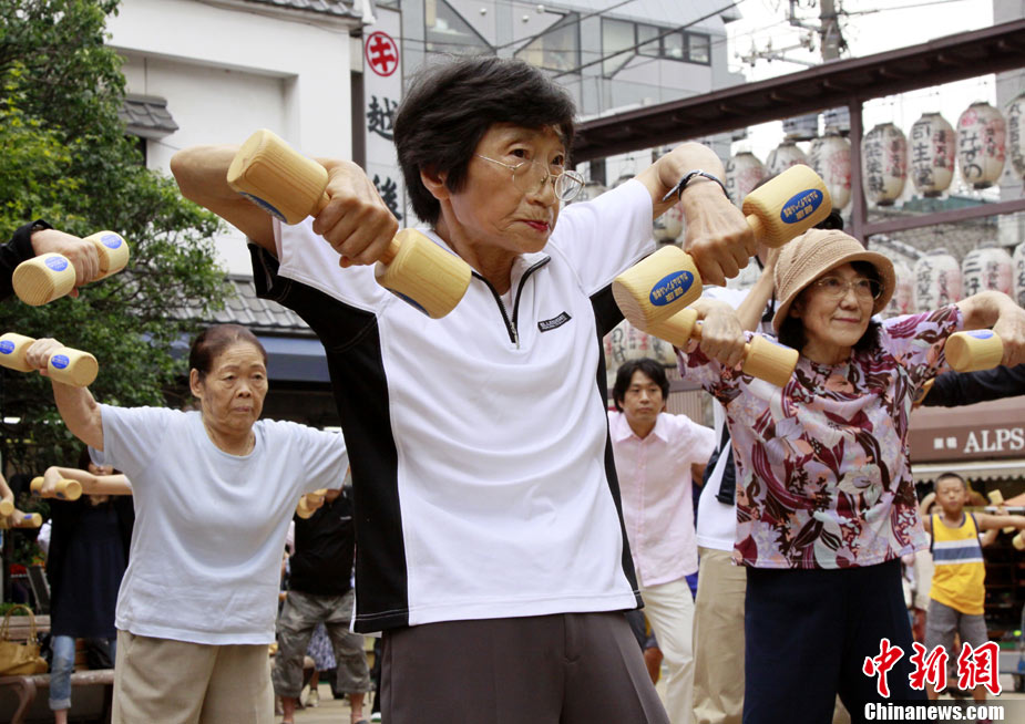 9月20日是日本的“敬老日”,眾多民眾在這一天來到東京的一家寺院,集體做啞鈴操迎接“敬老日”。