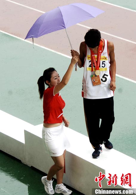 安徽特奧健兒何恩澤奪冠后與前來為他加油的媽媽和妹妹幸福相擁。王東明 攝