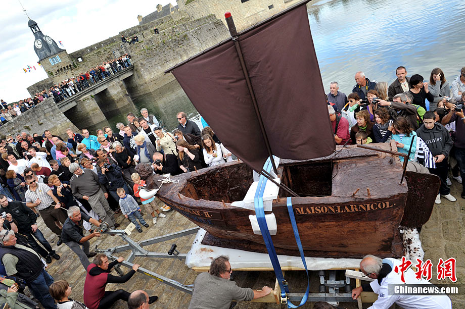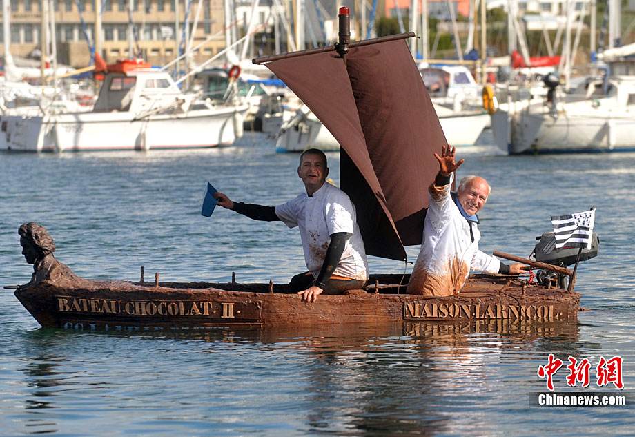 當(dāng)?shù)貢r(shí)間9月25日,一艘用巧克力和冰糖制造的帆船在法國西北菲尼斯泰爾省的孔卡諾港下海試水,吸引不少居民和游客觀看。這艘巧克力帆船長3.5米、重1.2噸,由法國名匠設(shè)計(jì)。帆船的龍骨全部使用冰糖搭建,除風(fēng)帆和發(fā)動(dòng)機(jī)外,其他部分則使用巧克力做材料。當(dāng)天,這只巧克力帆船載著制造者和一名乘客成功駛離孔卡諾港,在海上巡航數(shù)圈后安全返回,現(xiàn)場觀眾彩聲一片。