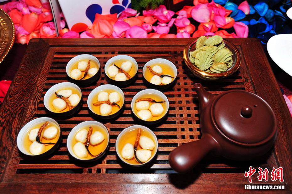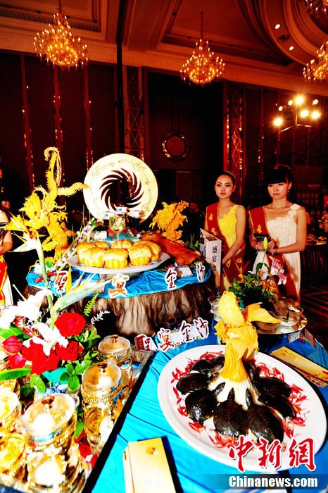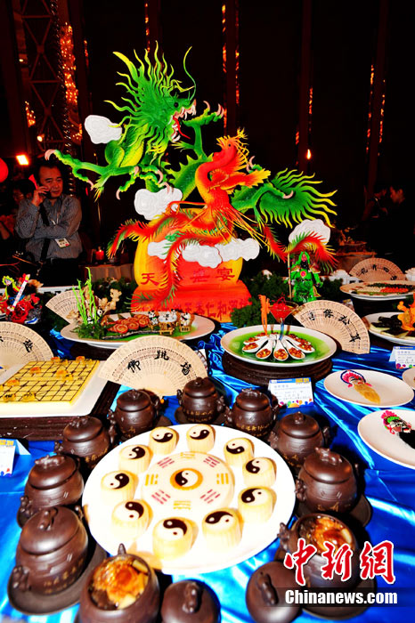 26日下午,第七屆中國國際美食旅游節(jié)在成都世紀城嬌子國際會議中心開幕。成都榮獲“世界美食之都”后的首道創(chuàng)意大餐在美食旅游節(jié)上正式亮相,“成都盛宴”薈萃了60桌主題宴席和經(jīng)典菜品,共計約1000款菜品,分川菜精品展示區(qū)、外國菜精品展示區(qū)、八大菜系精品展示區(qū)、品牌火鍋展示區(qū)、區(qū)(市)縣特色展示區(qū)。 安源 攝