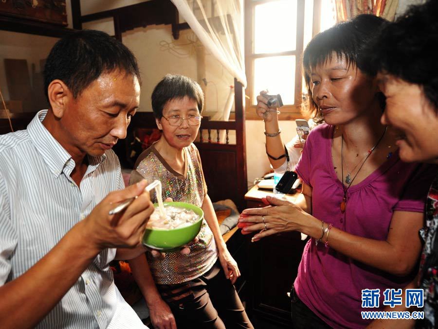 9月27日,被日方非法抓扣的中國漁船船長詹其雄返回家鄉(xiāng)--福建晉江市深滬鎮(zhèn)港滬村。當(dāng)?shù)剜l(xiāng)親熱情迎接他歸來。圖為詹其雄(圖中)下車后笑容滿面,受到了當(dāng)?shù)孛癖姷臒崃覛g迎。中新社發(fā) 孫虹 攝