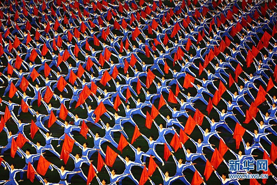 8月14日,朝鮮青少年在平壤“五一體育場”表演大型團(tuán)體操和文藝表演《阿里郎》。《阿里郎》由朝鮮10萬名青少年和專業(yè)藝術(shù)工作者參與演出,規(guī)模之大堪稱世界之最。2007年8月,《阿里郎》被載入《吉尼斯世界紀(jì)錄》。朝鮮勞動黨代表會議將于9月28日在平壤舉行。劉宇攝 圖片來源:新華網(wǎng)