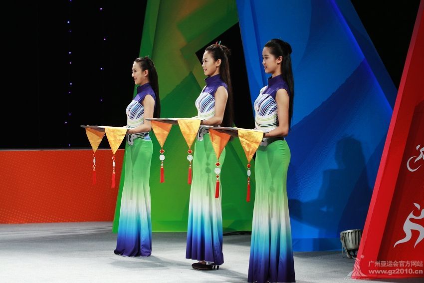 9月29日下午,第16屆亞運(yùn)會(huì)頒獎(jiǎng)儀式系列物資發(fā)布儀式在廣州市二少年宮舉行。圖為頒獎(jiǎng)禮儀。圖片來(lái)源:廣州亞運(yùn)會(huì)官網(wǎng)