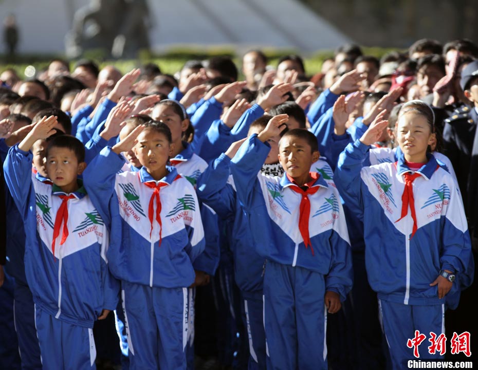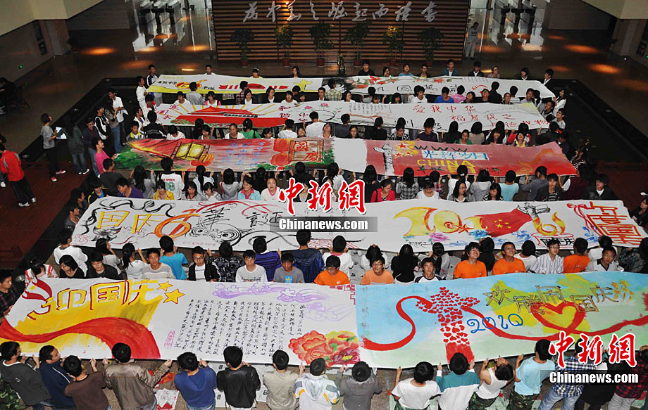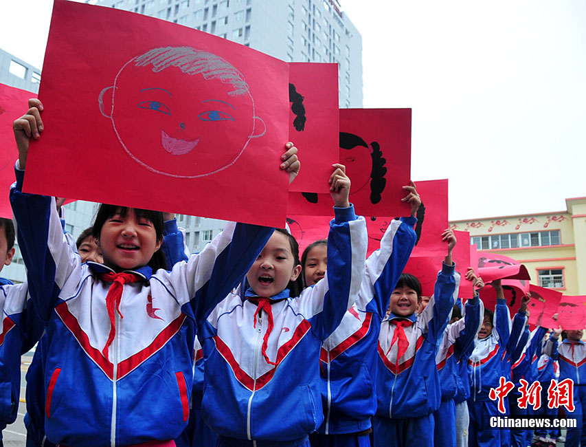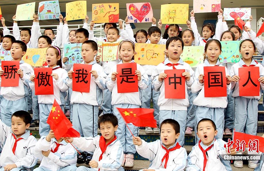 9月27日,一場以“我驕傲,我是中國人”為主題的國慶61周年誦讀繪畫賽活動(dòng)在蘇州市一所小學(xué)校舉行,該校百余名一、二年級(jí)學(xué)生以集體誦讀和繪畫展示等形式,表達(dá)對偉大的祖國贊美與衷心祝福。王建中 攝 圖片來源:cnsphoto
