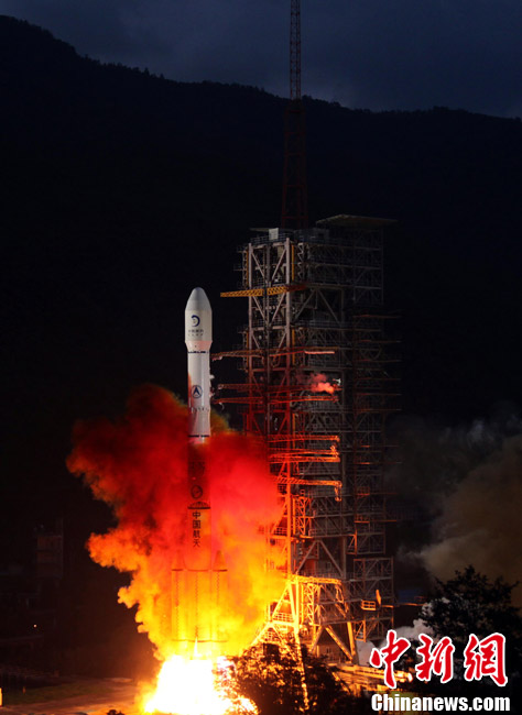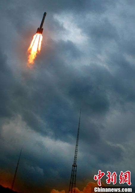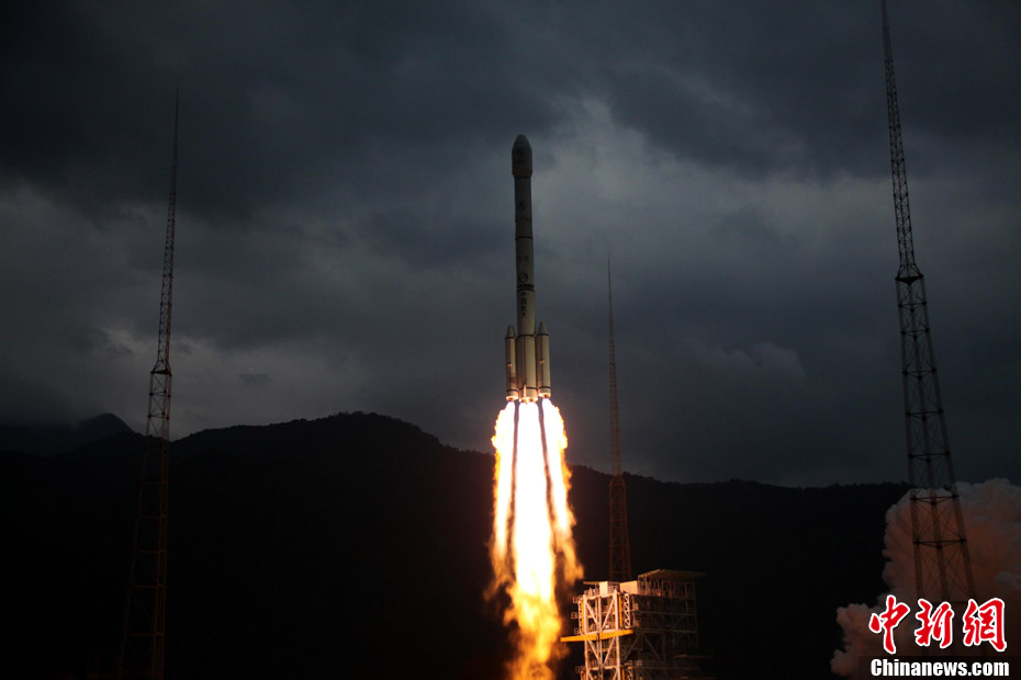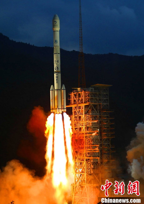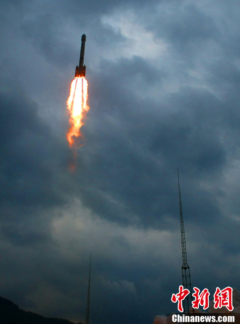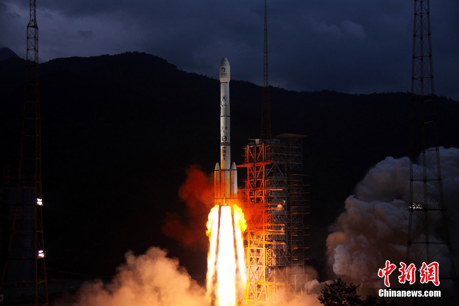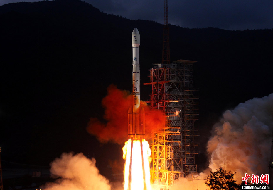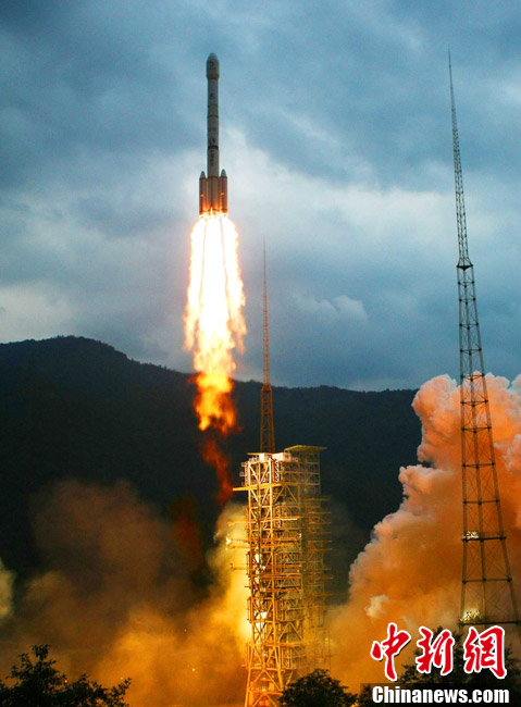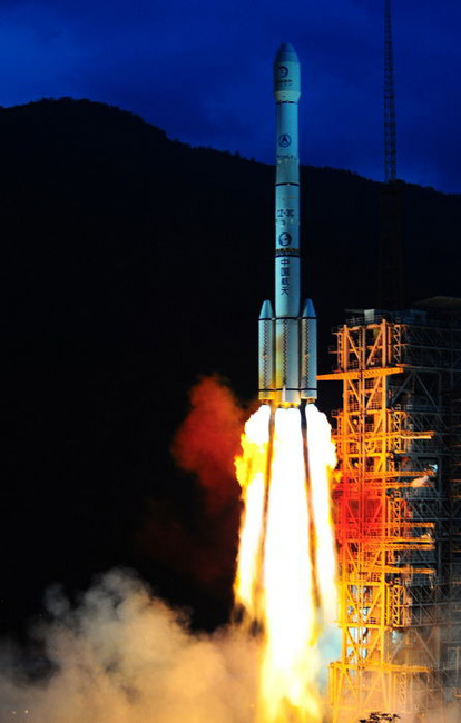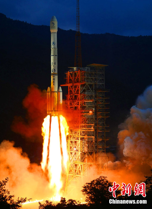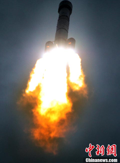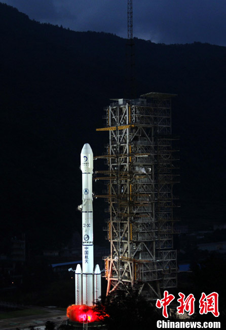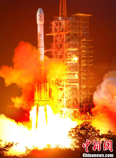 2010年10月1日18時59分57秒,中國探月工程二期的技術(shù)先導(dǎo)星“嫦娥二號”在西昌衛(wèi)星發(fā)射中心由“長征三號丙”運載火箭發(fā)射升空。中新社記者 宋吉河 攝