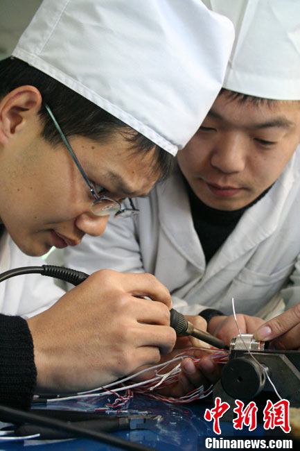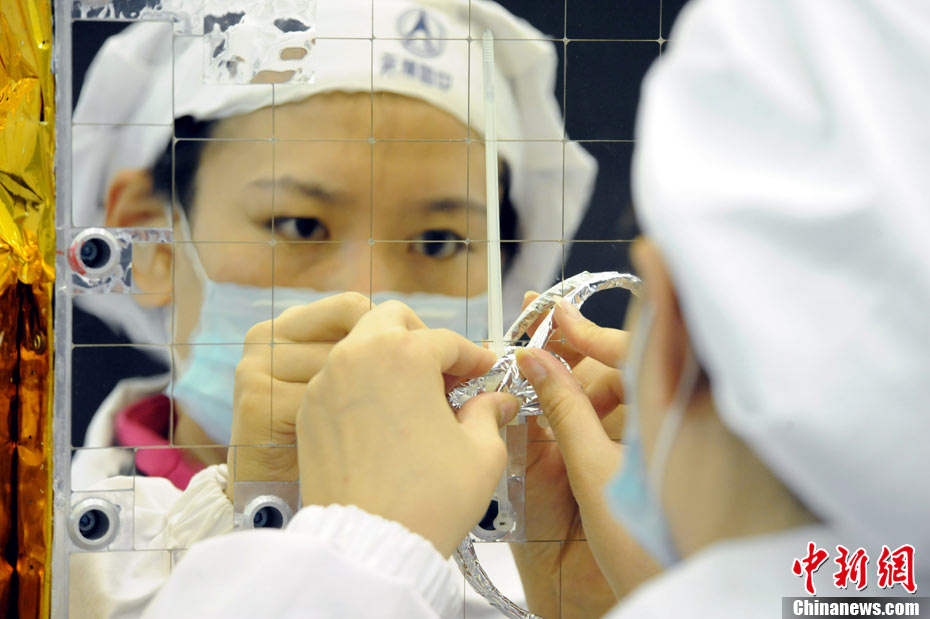 繼嫦娥一號衛(wèi)星圓滿完成我國首次繞月探測工程之后,嫦娥二號繞月探測衛(wèi)星作為我國探月工程二期的先行者,又踏上了奔月的征程。圖為精益求精細操作。圖片來源:中國航天科技集團公司(崔寧 攝)