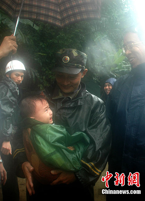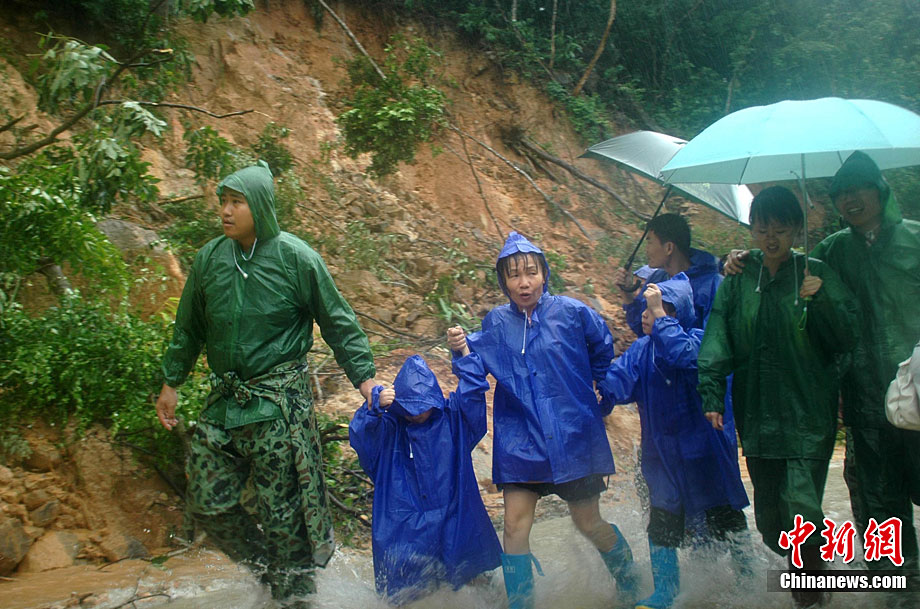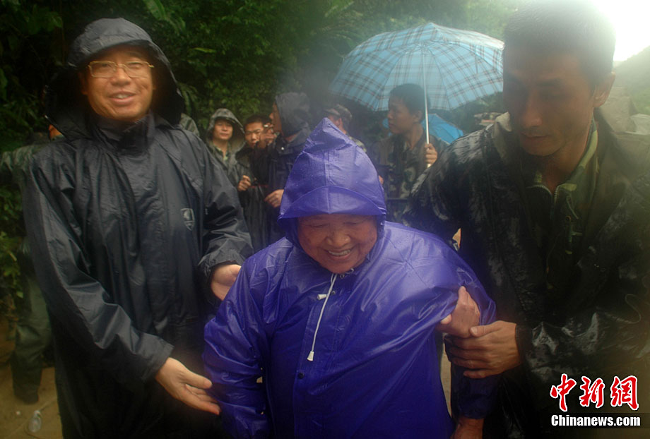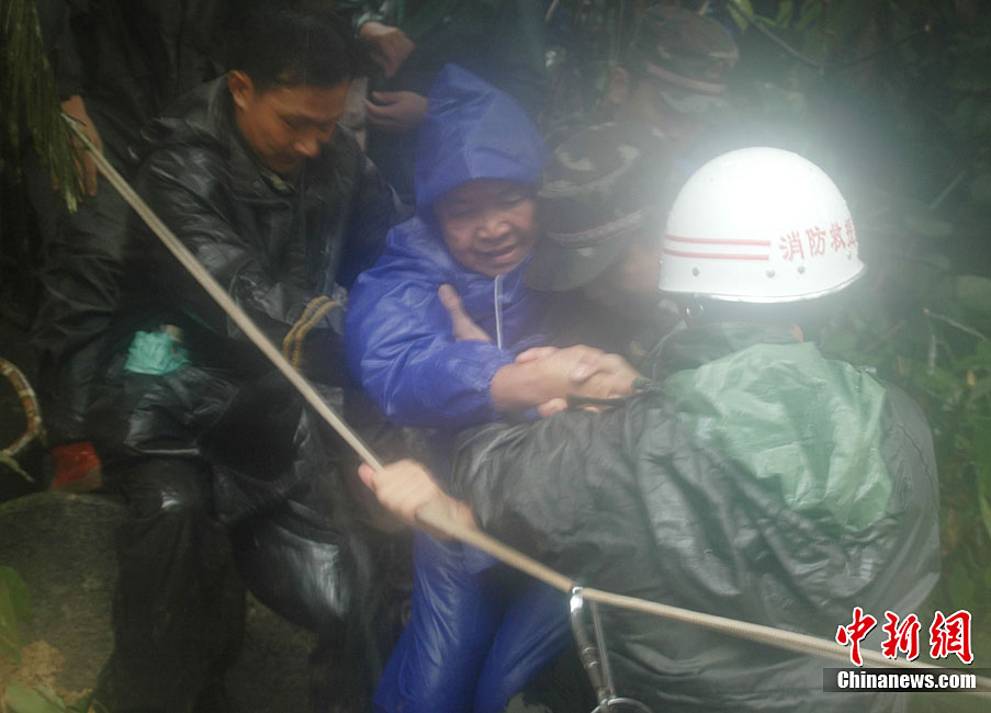10月4日15時許,經(jīng)過救援人員近48個小時的緊張救援,因山體滑坡被滯留在吊羅山中的125名游客已經(jīng)全部安全轉(zhuǎn)移下山。10月2日下午3時,在海南陵水吊羅山林業(yè)局上山道路約3.5公里處,突發(fā)山體滑坡,海南省政府相關(guān)部門和陵水縣委縣政府全力組織人員實施救援。圖為今年已經(jīng)88歲的老人許環(huán)渠(音)在救援人員的陪護下轉(zhuǎn)移。中新社記者 尹海明 攝
