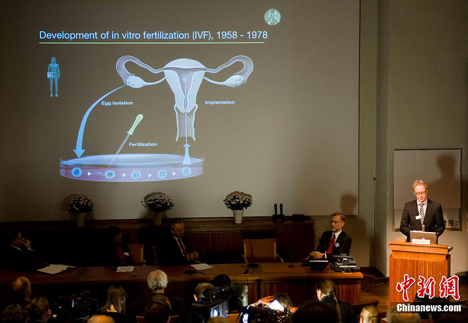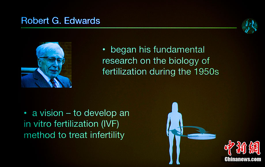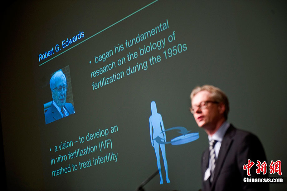 被譽(yù)為“試管嬰兒之父”的英國科學(xué)家羅伯特·愛德華茲10月4日獲得諾貝爾生理學(xué)或醫(yī)學(xué)獎,他因身體欠佳未對獲獎消息發(fā)表感言。圖為2008年7月12日,愛德華茲(左)與世界第一個試管嬰兒路易斯(右)和她的兒子、母親合影。