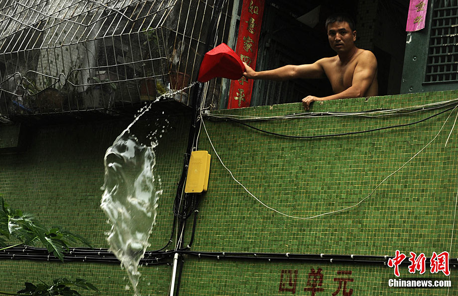10月5日,持續(xù)五天的暴雨導(dǎo)致三亞多個(gè)小區(qū)嚴(yán)重積水。不少市民家中進(jìn)水,商戶紛紛歇業(yè)避雨。徐勤濤 攝 圖片來(lái)源:cnsphoto