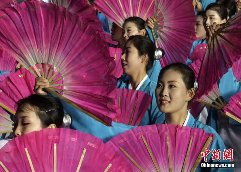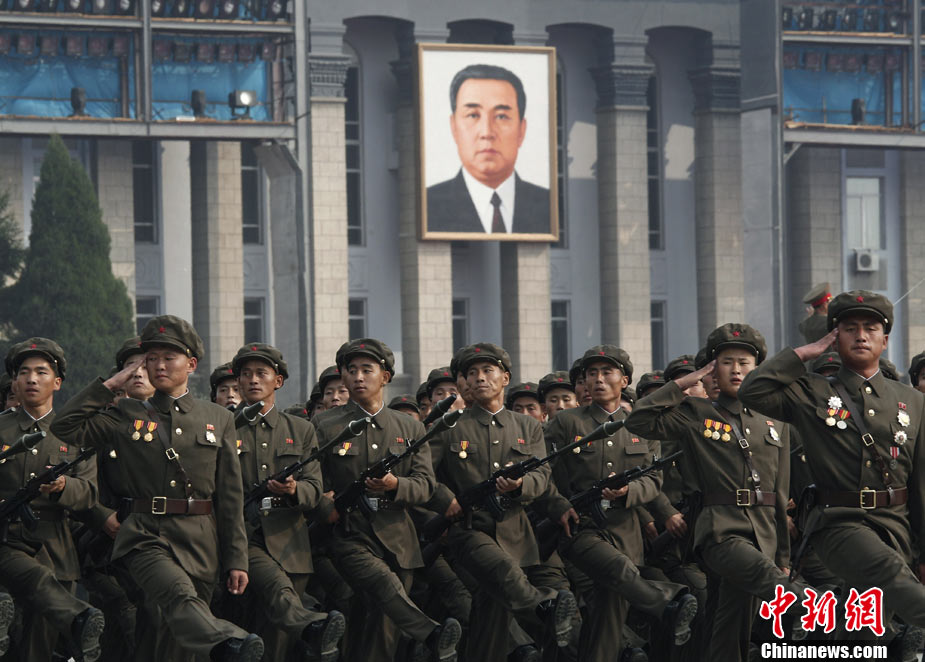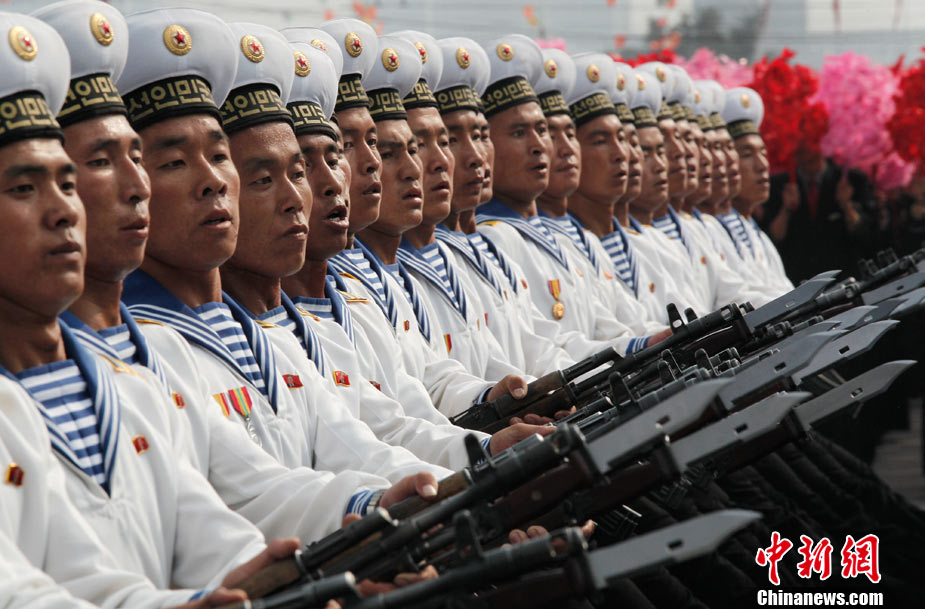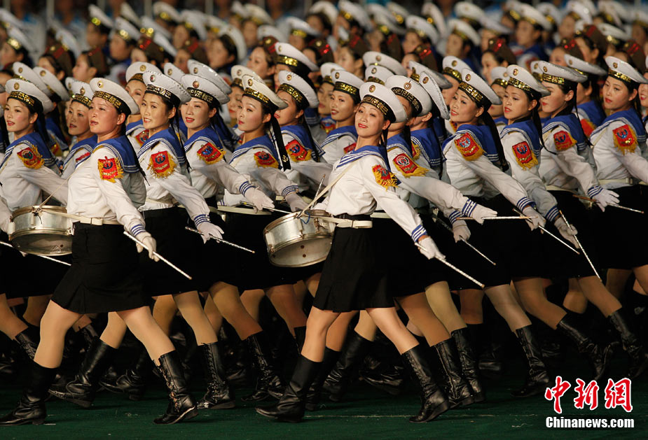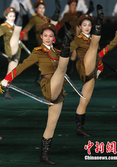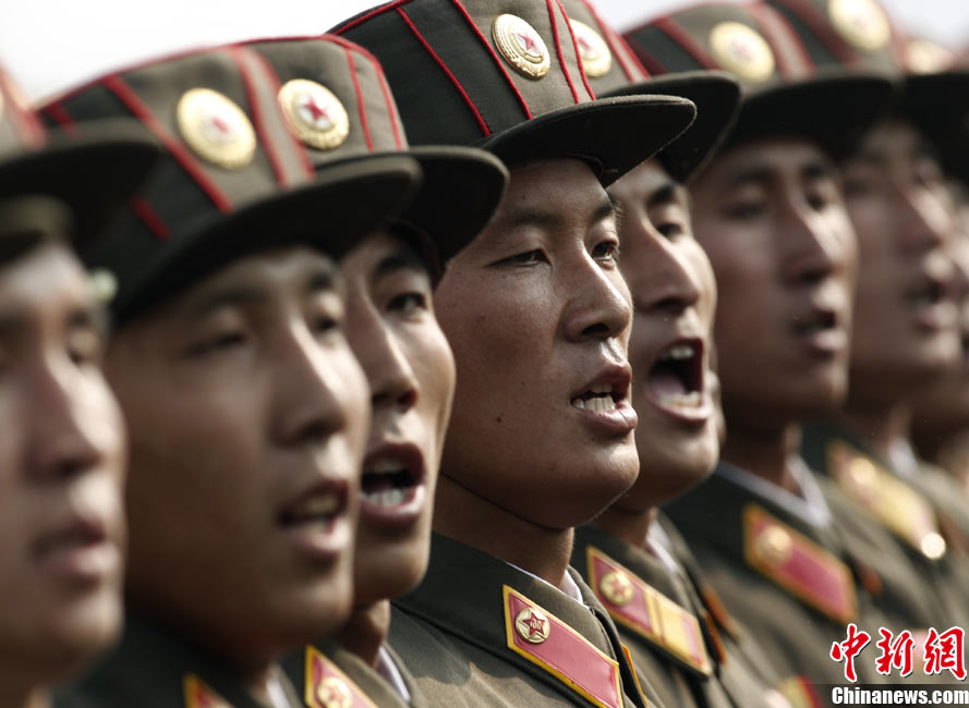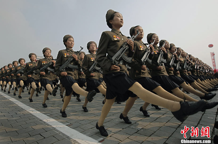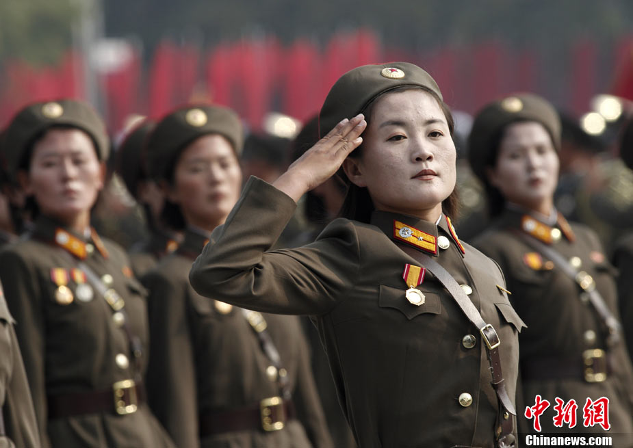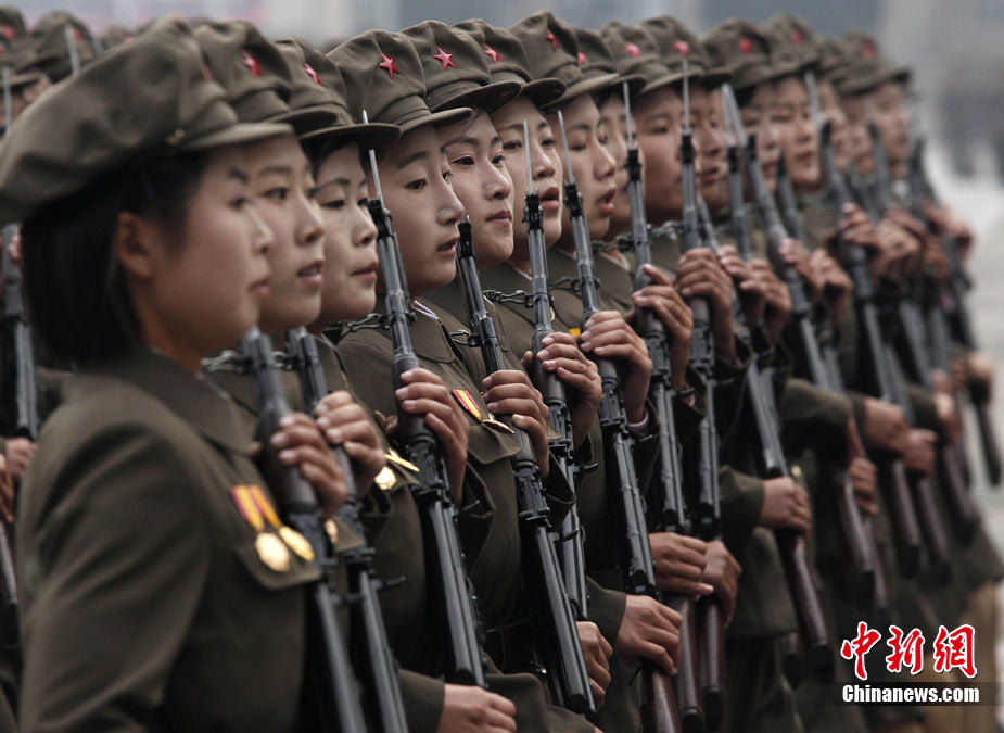 10月10日,朝鮮在平壤金日成廣場(chǎng)舉行慶祝建黨65周年盛大閱兵式,朝鮮勞動(dòng)黨總書記金正日出席。有媒體稱,今年的朝鮮勞動(dòng)黨建黨慶;顒(dòng)將是該國歷史上規(guī)模最大的一次。圖為10日,閱兵式前的女兵演練。