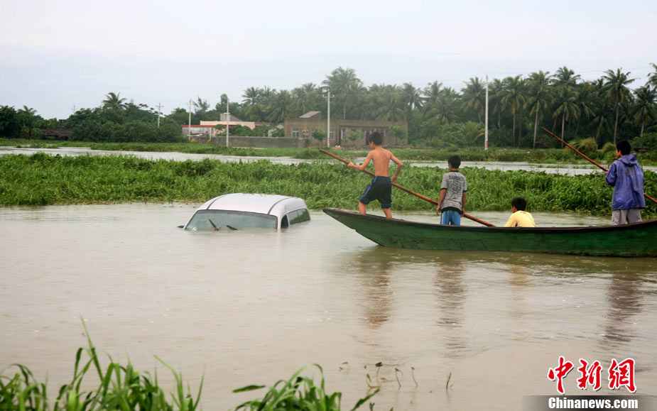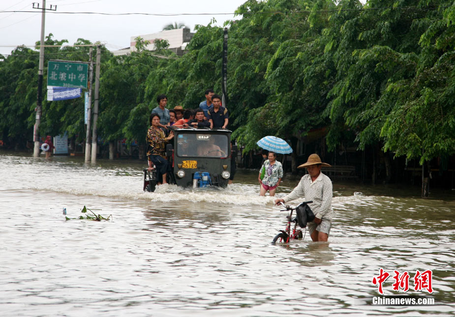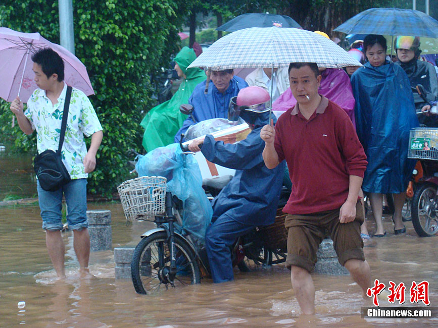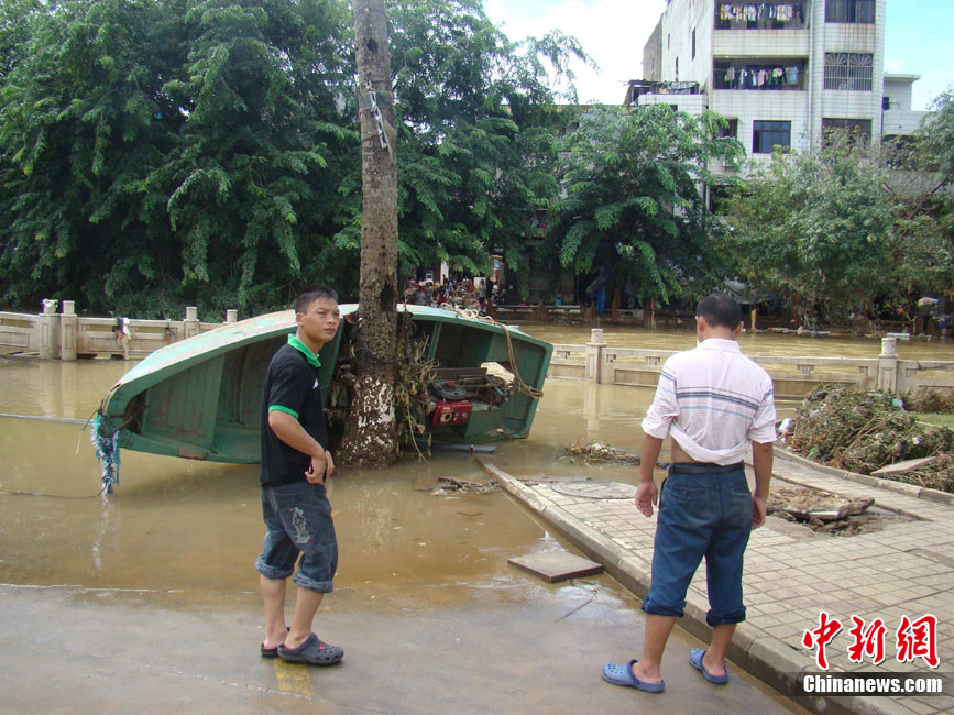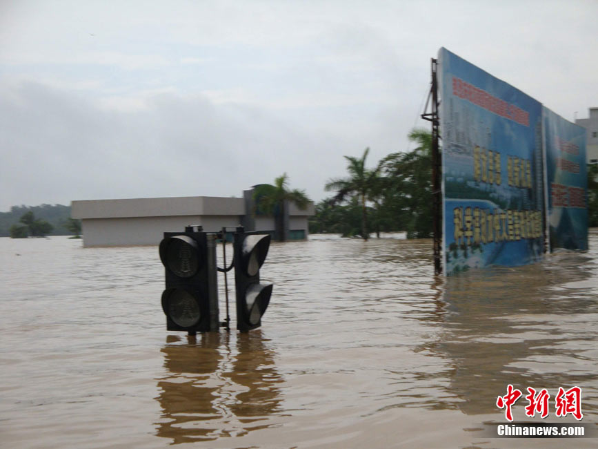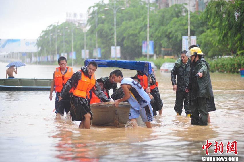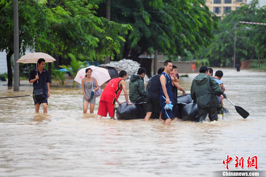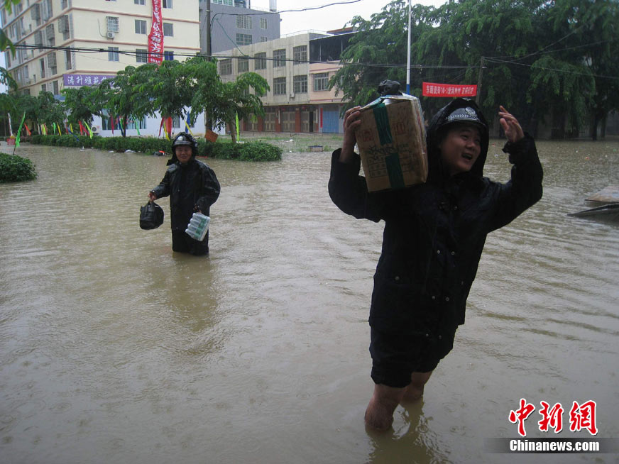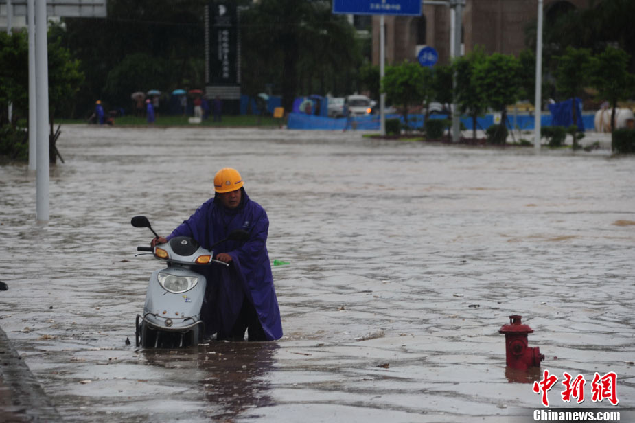 10月10日上午,持續(xù)多天強(qiáng)降雨的海南文昌市天空放晴,圍困文昌市區(qū)的洪水已消退,沿街商戶正在整理物品,清潔店面衛(wèi)生,供水供電在中午時(shí)分得以恢復(fù)。圖為海南省軍區(qū)某海防團(tuán)上百名官兵參與清潔城市參與衛(wèi)生。 中新社發(fā) 張成 攝