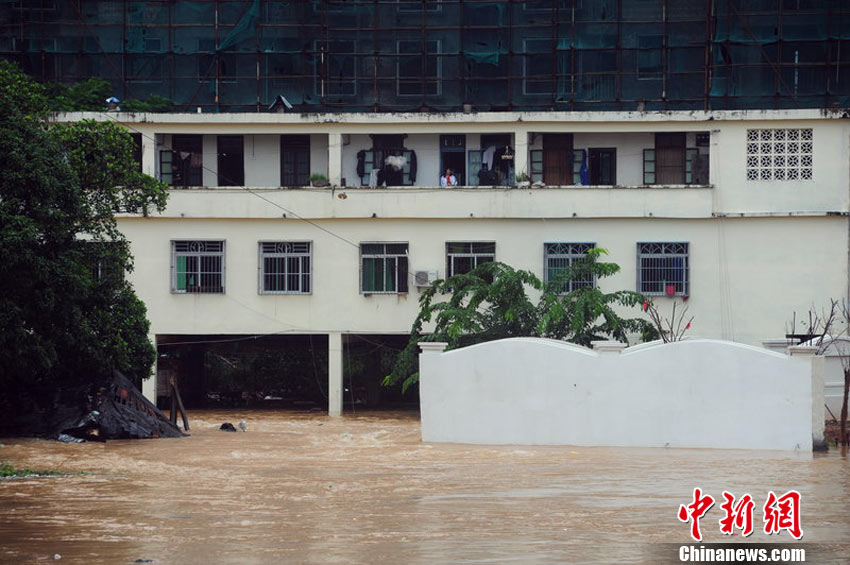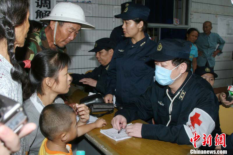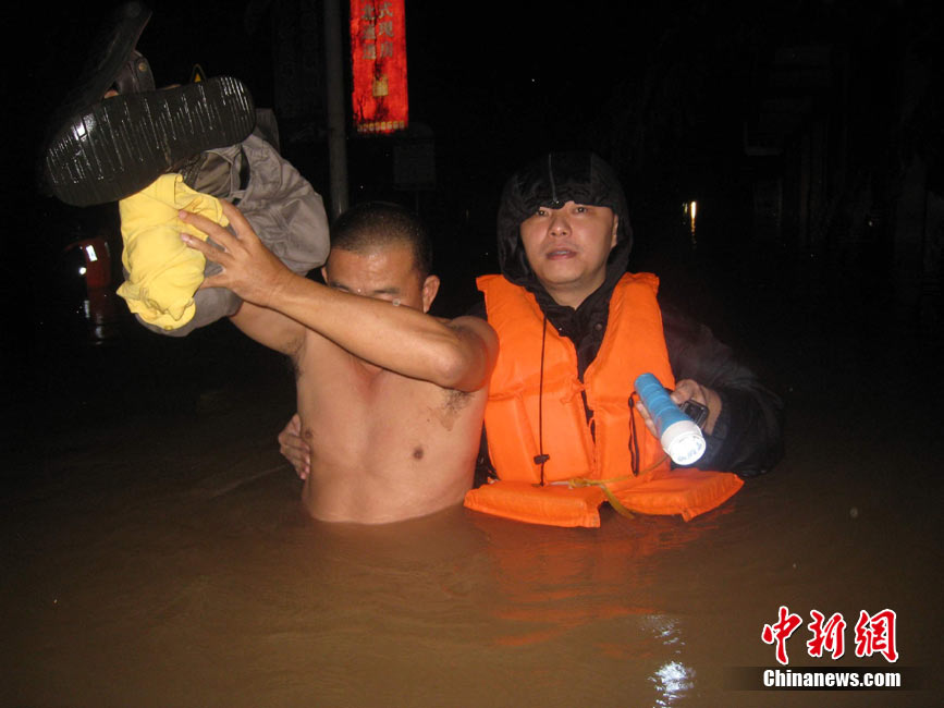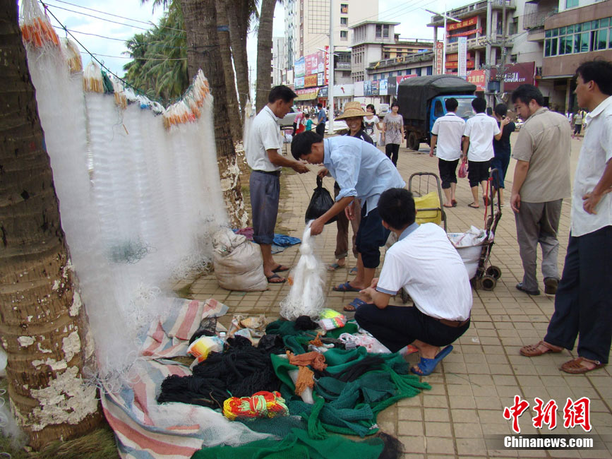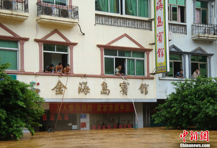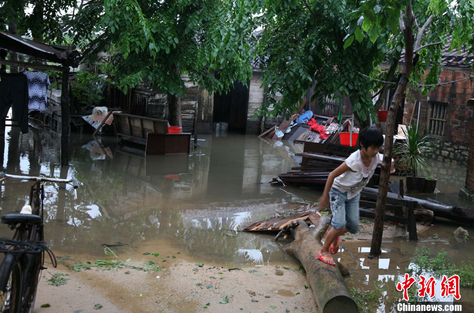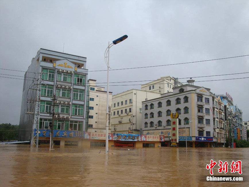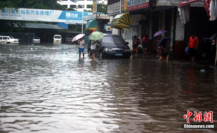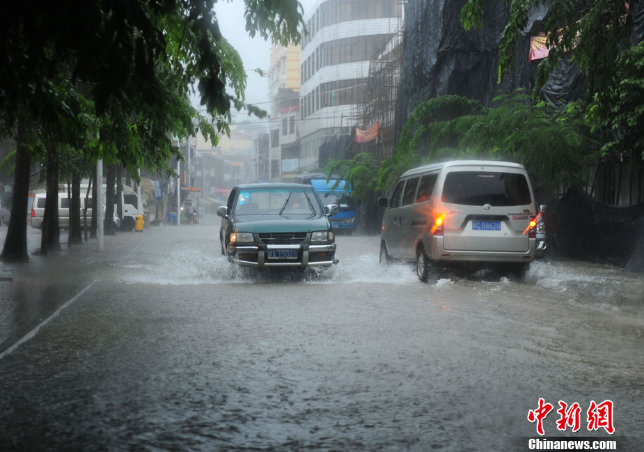 10月10日上午,持續(xù)多天強(qiáng)降雨的海南文昌市天空放晴,圍困文昌市區(qū)的洪水已消退,沿街商戶正在整理物品,清潔店面衛(wèi)生,供水供電在中午時(shí)分得以恢復(fù)。圖為海南省軍區(qū)某海防團(tuán)上百名官兵參與清潔城市參與衛(wèi)生。 中新社發(fā) 張成 攝