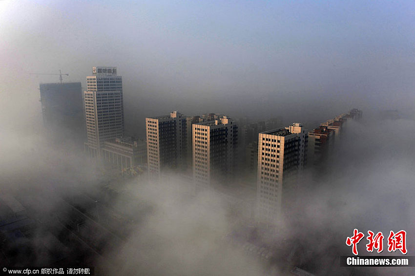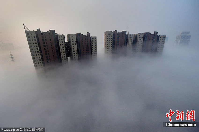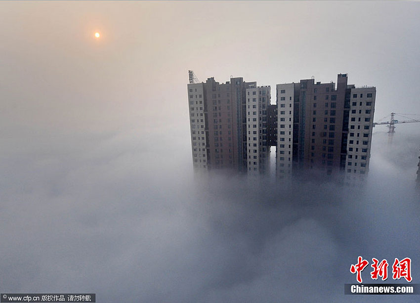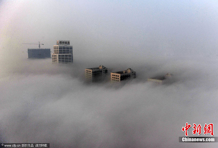 10月9日早上6點(diǎn)多,一場(chǎng)罕見(jiàn)的“平流霧”襲擊合肥。合肥城市的建筑掩映在濃霧中異常壯觀。王長(zhǎng)豐 攝 圖片來(lái)源:CFP視覺(jué)中國(guó)