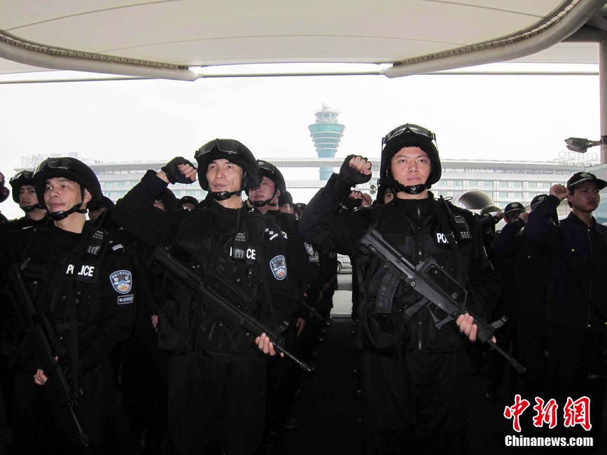 10月12日上午,廣州白云國際機場公安局舉行亞運安保誓師大會,數(shù)百名警員出席大會,在此間保證圓滿完成亞運安保任務。中新社記者 柯小軍 攝