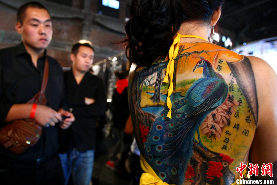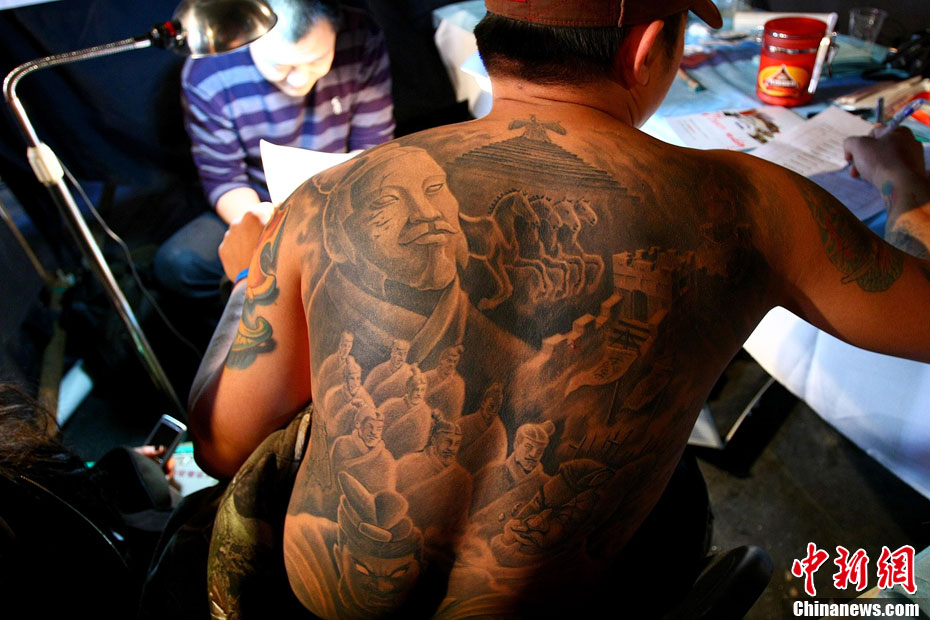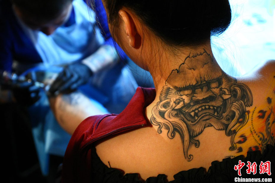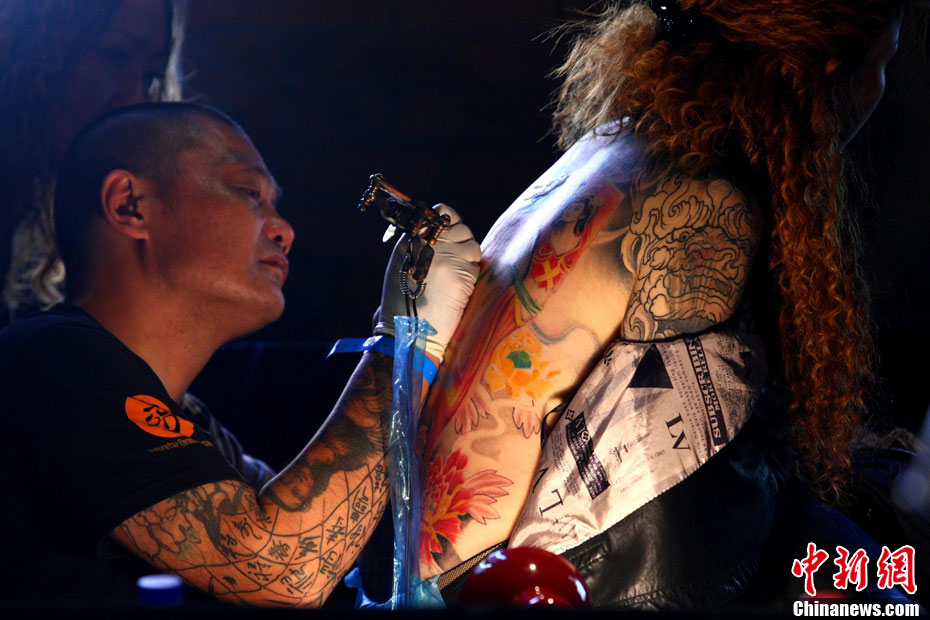 10月15日,中國(國際)紋身藝術節(jié)在北京798藝術區(qū)開幕,這是國內舉辦的首次國際性紋身藝術節(jié)。本屆紋身展會的宗旨是:“讓藝術向紋身靠攏”,為國內外紋身師提供一個公平、公正的同臺獻藝和交流的平臺。來自美國、澳大利亞、新西蘭等國以及中國許多省市的紋身師現場展示富有個性、創(chuàng)意十足的紋身作品。藝術節(jié)將持續(xù)至17日。 中新社發(fā) 富田 攝