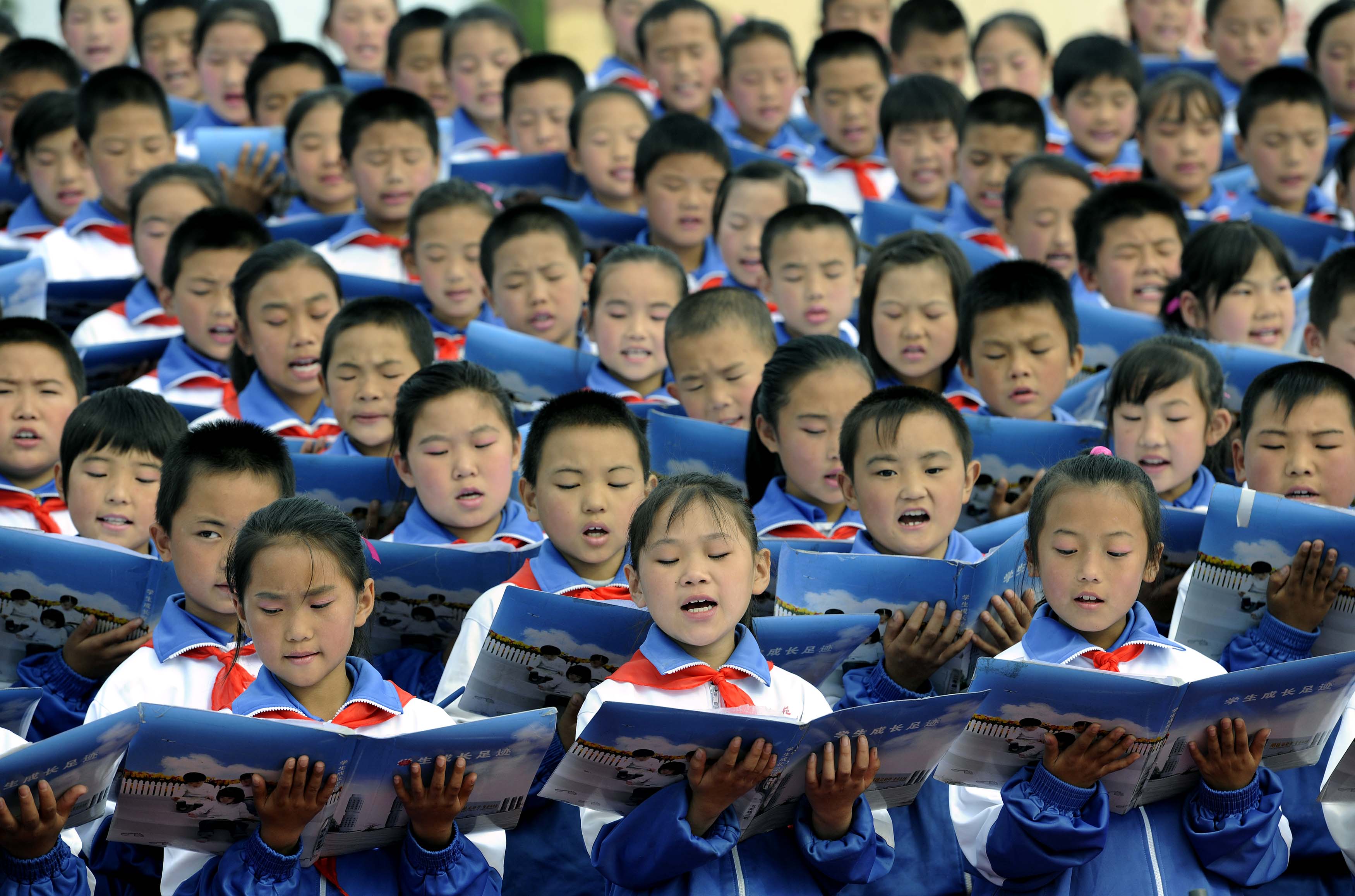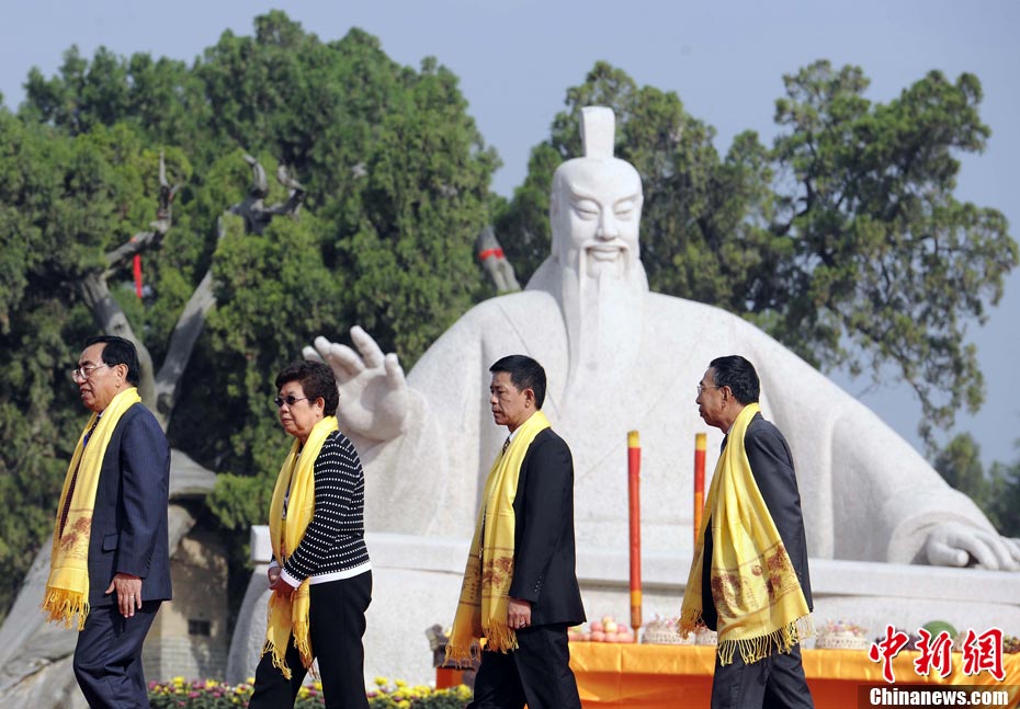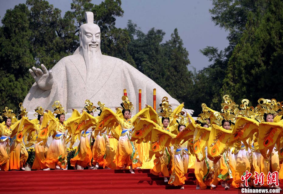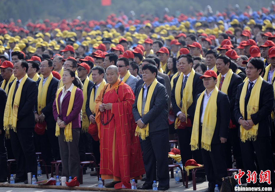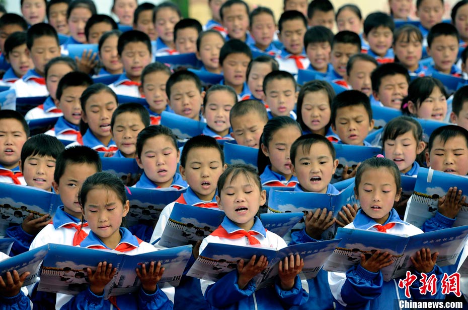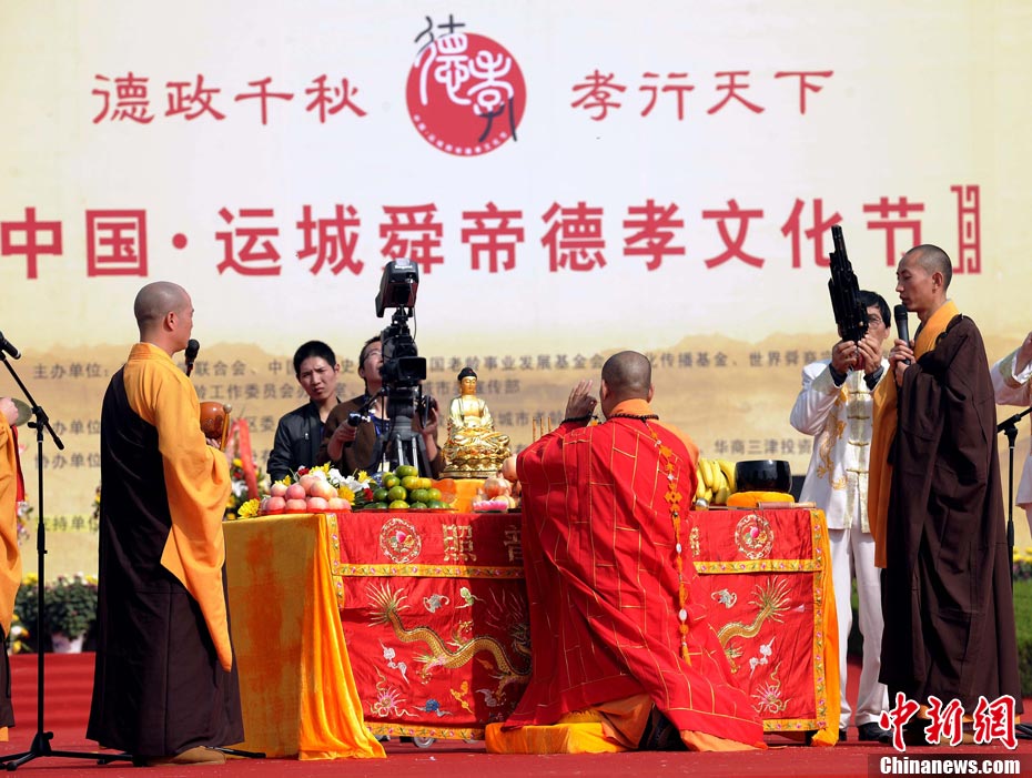 10月16日,運(yùn)城舜帝德孝文化節(jié)在山西省運(yùn)城市鹽湖區(qū)鳴條舜帝陵開幕。舜帝以其獨(dú)特的歷史地位和杰出的歷史功績,被后人尊崇為“百孝之首”、“道德之祖”和“文明之元”,本屆文化節(jié)主題也定義為“德政千秋、孝行天下”。圖為運(yùn)城千名小學(xué)生齊誦《弟子規(guī)》。中新社發(fā) 劉震 攝
