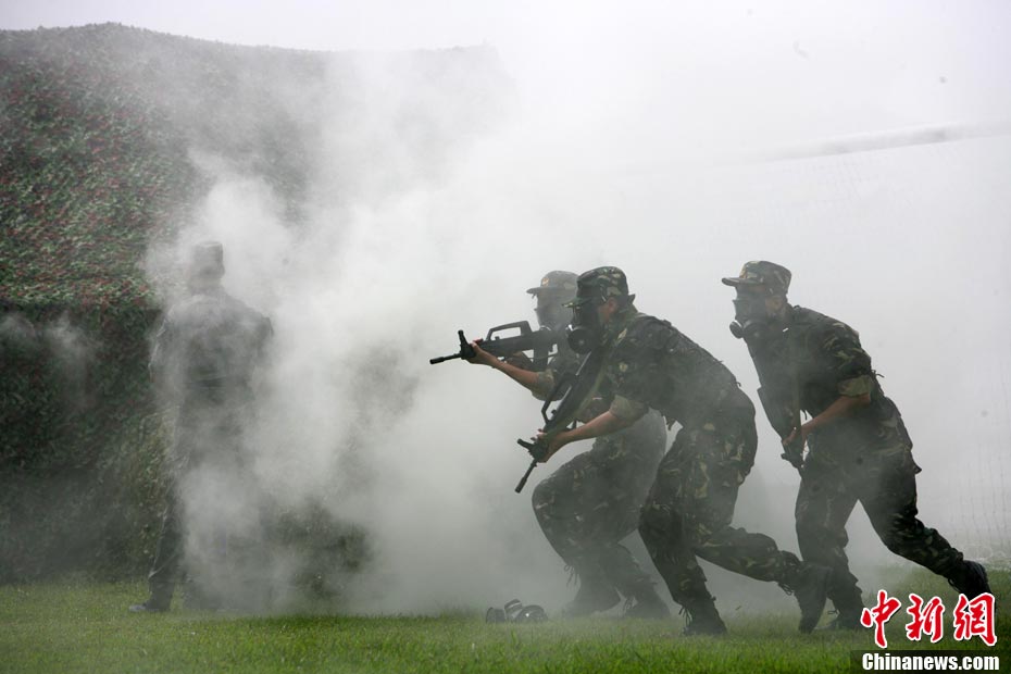 10月16日,中國人民解放軍駐港部隊特種兵在香港昂船洲海軍基地進行“獵人戰(zhàn)斗”演練,展示過硬的搏擊功夫。當(dāng)天,駐軍與香港各大院校大學(xué)生聯(lián)誼活動,以各種形式相互交流,增進香港學(xué)生對國家的了解。 中新社發(fā) 洪少葵 攝