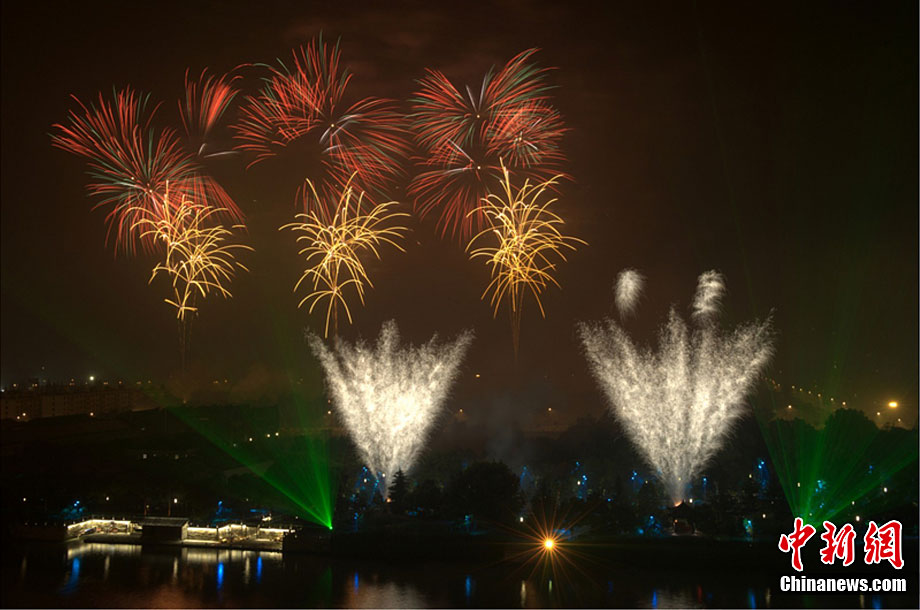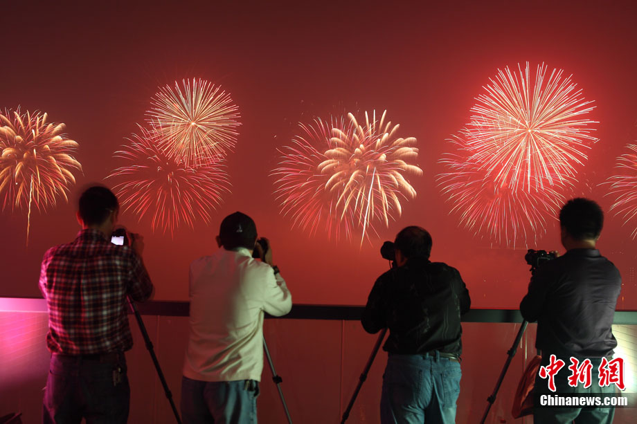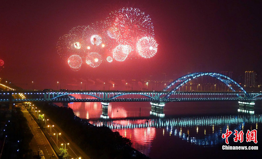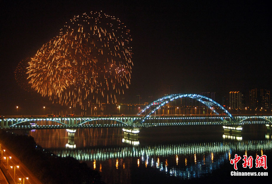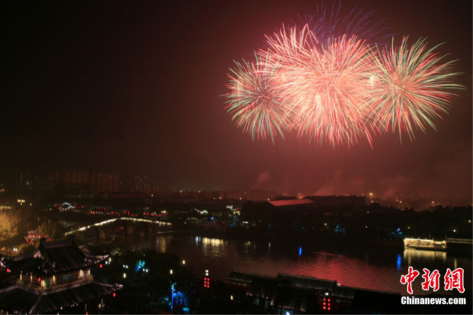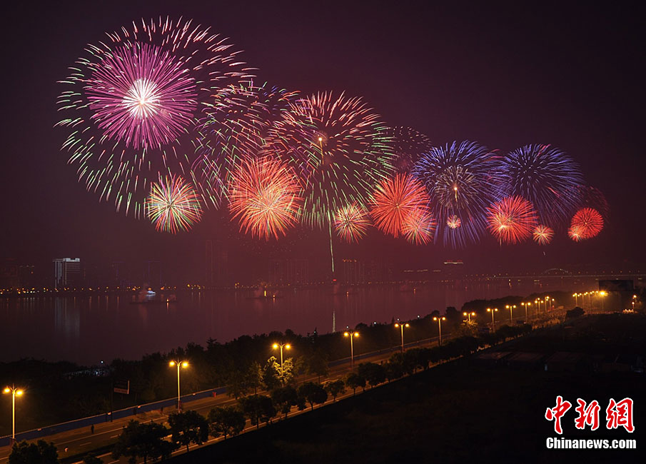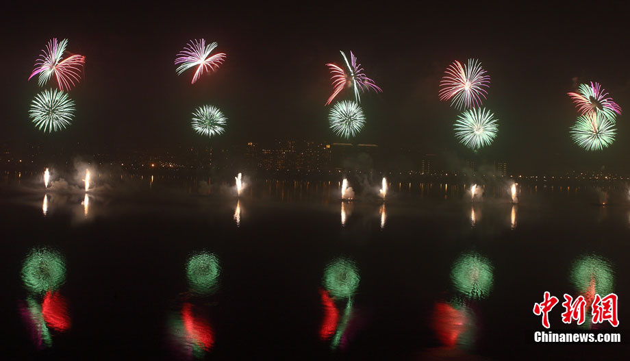 10月16日,作為2010杭州國(guó)際煙花大會(huì)分會(huì)場(chǎng),璀璨旖旎的煙花再次在運(yùn)河上空綻放。16萬(wàn)發(fā)煙花持續(xù)近40分鐘的燃放再次點(diǎn)亮千年運(yùn)河的夜空,上演一場(chǎng)夢(mèng)幻般的視覺(jué)盛宴。中新社發(fā) 夏毅 攝
