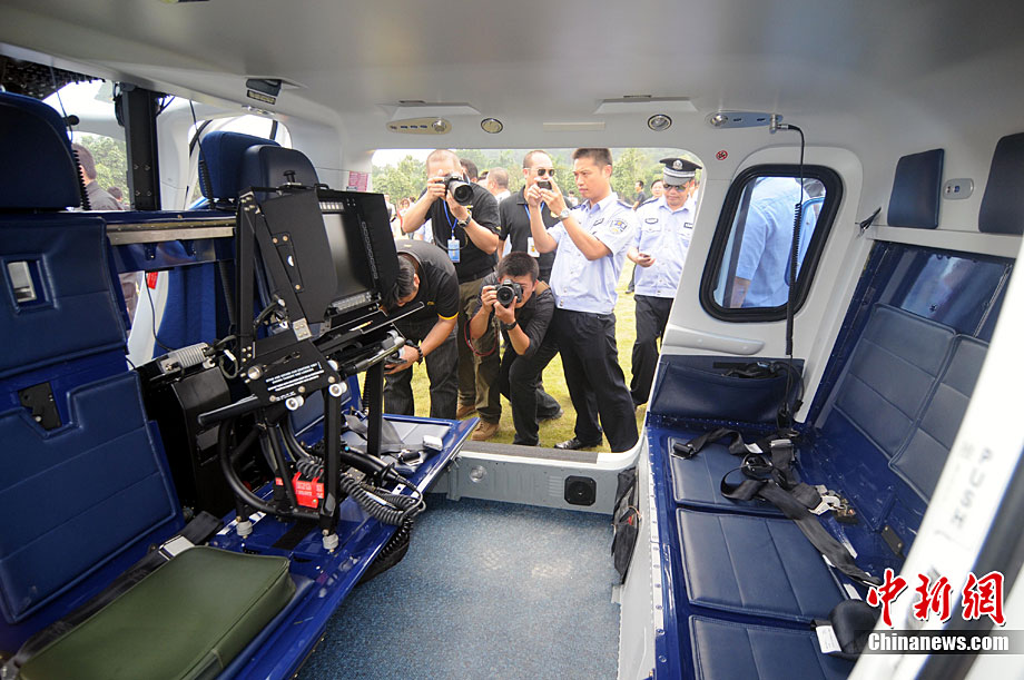 10月18日,南寧警用直升機首飛儀式在南寧青秀山舉行,這是南寧首架也是中國西南首架警用直升機。該機最大速度每小時311千米,最大航程是977千米,最大起飛重量是3000千克,駕駛艙可乘坐2名飛行員,客艙內(nèi)放置有一個工作臺和5個乘客座椅,續(xù)航時間為4小時,是意大利阿古斯特-韋斯特蘭公司生產(chǎn)的A109E輕型雙發(fā)直升機。據(jù)悉,這是據(jù)廣州、北京、上海后,第四個擁有警用直升機的城市。圖片來源:cnsphoto loniya 攝