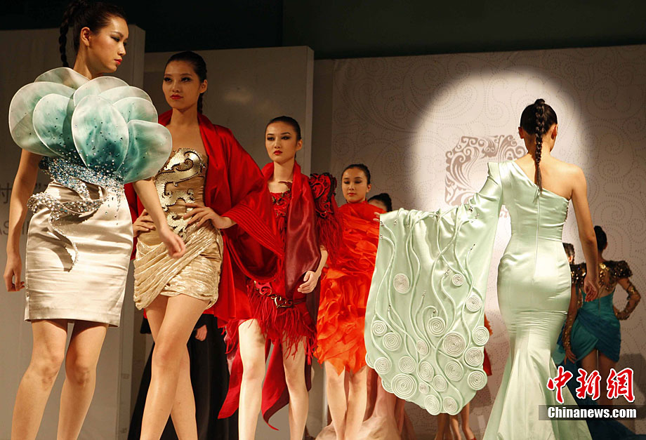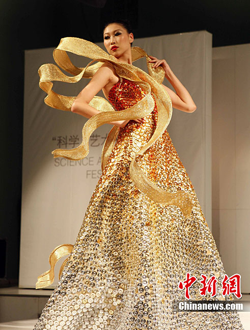10月19日,北京服裝學(xué)院第六屆“科學(xué)·藝術(shù)·時尚”節(jié)開幕。此次活動將以往的“科學(xué)·藝術(shù)·服裝”正式更名為“科學(xué)·藝術(shù)·時尚”,融入了更多的時尚色彩,是歷屆活動中最豐富的一次。其中包括展示中、日、韓傳統(tǒng)服飾展和技藝交流;朝鮮時代韓服的美與流行;拼布藝術(shù)展;學(xué)生創(chuàng)意一條街等,全面體現(xiàn)了該校藝工融合的特色。圖為華彩意象—方·圓·盛時尚服裝秀展示最新潮流。中新社記者 任海霞 攝