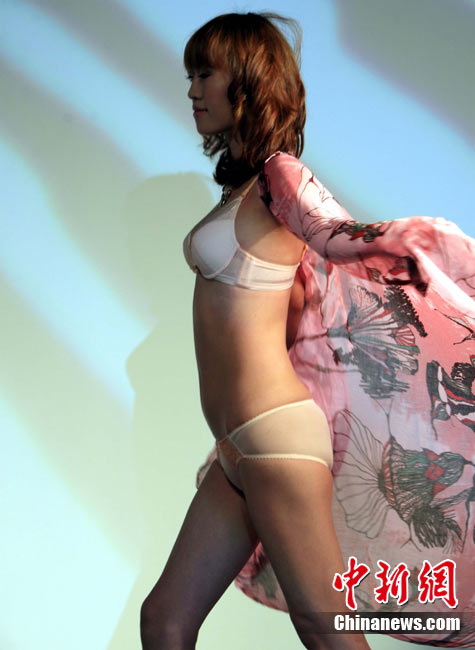 10月21日,中國(guó)某女性?xún)?nèi)衣品牌在上海舉行2011春夏新品發(fā)布會(huì),率先推出“自在·零負(fù)擔(dān)”內(nèi)衣,讓女性在即將到來(lái)的兔年中體驗(yàn)“身體不受束縛,心靈自由放逸”的逍遙境界。 中新社記者 潘索菲 攝