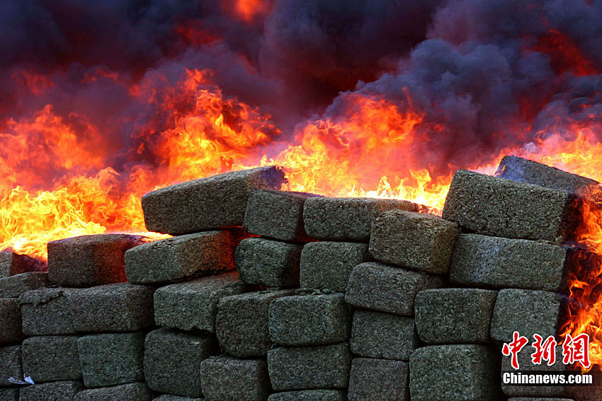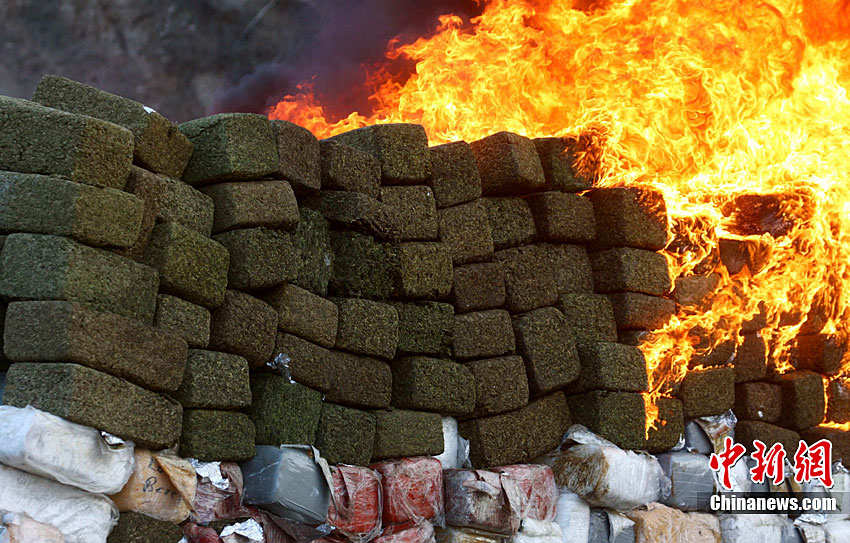 當(dāng)?shù)貢r(shí)間10月20日,墨西哥在北部邊境城市蒂華納的一個(gè)軍營內(nèi)集中銷毀了在北部邊境繳獲的134噸大麻。