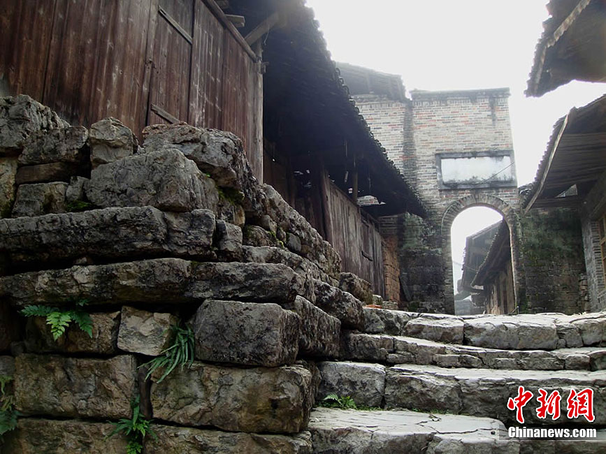 地處湘鄂渝交界處的湖南湘西自治州龍山縣賈市鄉(xiāng)是被譽(yù)為“原始戲劇的活化石”的茅古斯舞劇的發(fā)源地。這里是典型的土家族聚居地,居住環(huán)境原始古樸,至今保存完好的長(zhǎng)達(dá)千余米的明清石板古街光滑剔透,沿街清一色木石結(jié)構(gòu)的明末清初古建筑群鱗次櫛比,極具民族特色。楊運(yùn)大 攝