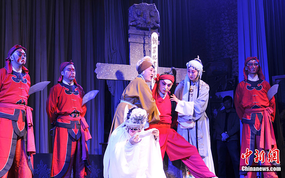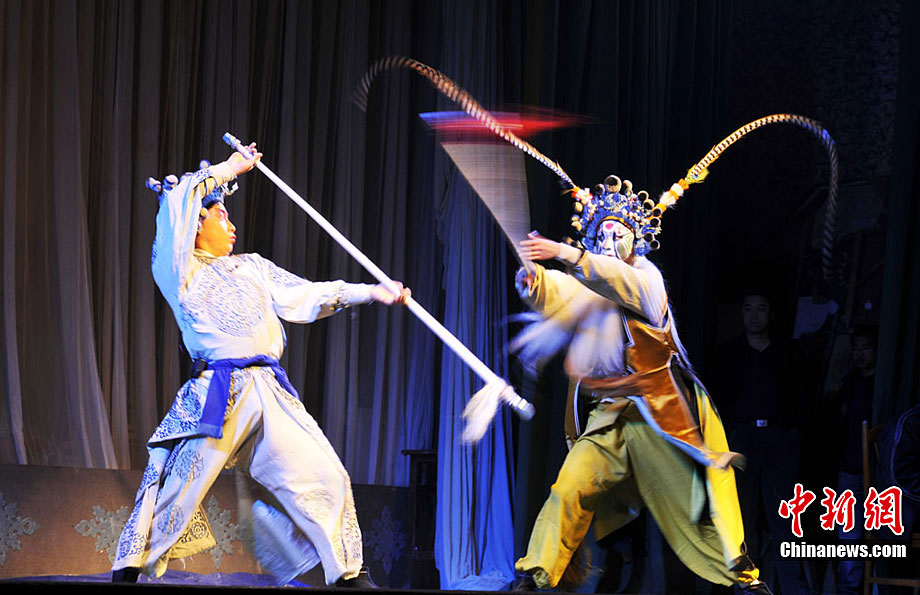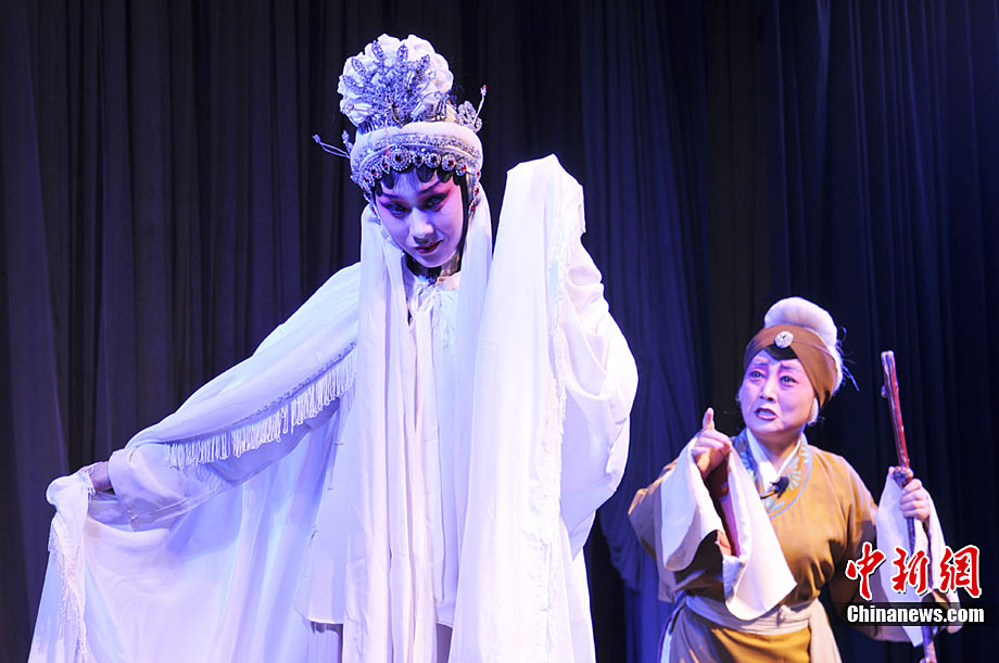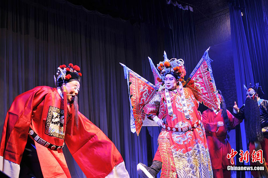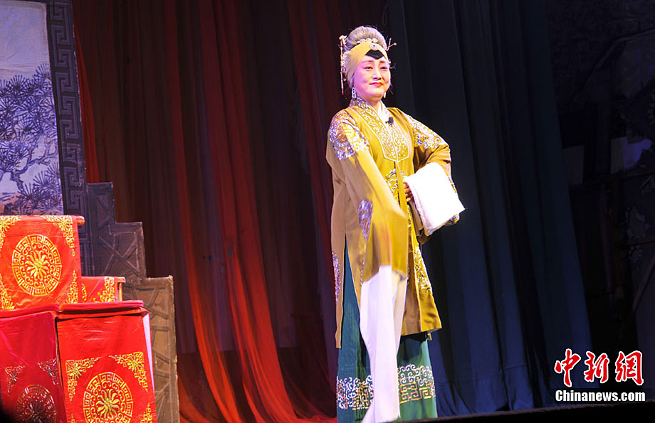 10月18日至22日,甘肅秦劇團(tuán)到基層為鄉(xiāng)下人唱“大戲”,演員們唱念做打演,招招真功夫給鄉(xiāng)親們送來(lái)了一場(chǎng)場(chǎng)戲曲大餐。《三滴血》、《火焰駒》、《竇娥冤》等演出,一出出膾炙人口的傳統(tǒng)劇目風(fēng)格各異,精彩紛呈,鄉(xiāng)親們?cè)谝淮未蔚那楣?jié)跌宕中笑聲不止、掌聲不斷。秦腔又稱亂彈,源于西秦腔,流行于中國(guó)西北的陜西、甘肅、青海、寧夏、新疆等地,又因其以棗木梆子為擊節(jié)樂(lè)器,所以又叫“梆子腔”,俗稱“桄桄子”,經(jīng)國(guó)務(wù)院批準(zhǔn)列入第一批國(guó)家級(jí)非物質(zhì)文化遺產(chǎn)名錄。楊艷敏 攝