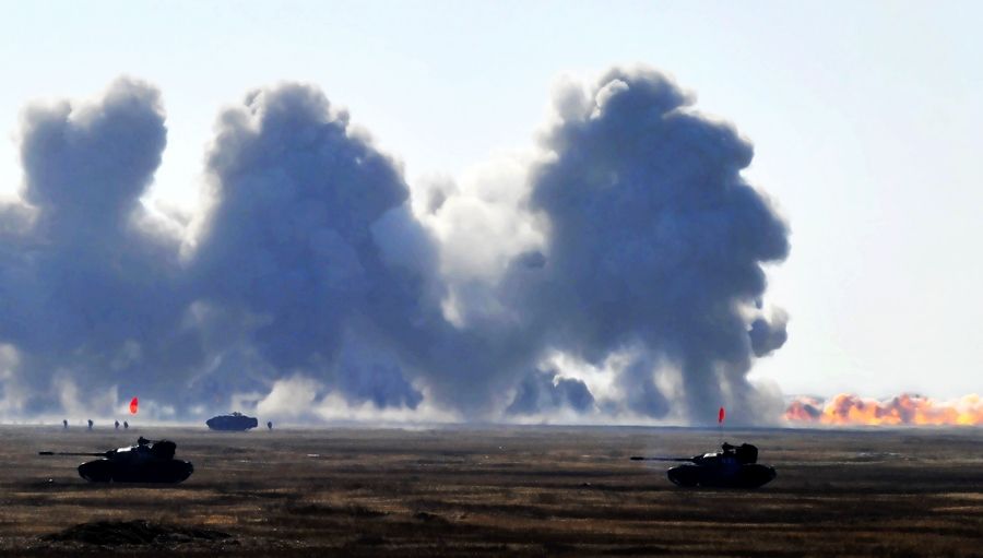 與此同時,某師偵察分隊乘坐沖鋒舟對渡口兩岸展開嚴密搜索警戒,隱蔽于河岸灘頭的防空兵群迅即構建防空天網(wǎng)。河面上,沖鋒舟如蛟龍般來回穿梭,不斷施放防“敵”空中偵察的煙幕彈。很快,江面煙霧滾滾,將緊張的架橋場面遮掩得嚴嚴實實。劉永華/朱映濤 圖片來源:中國軍網(wǎng)