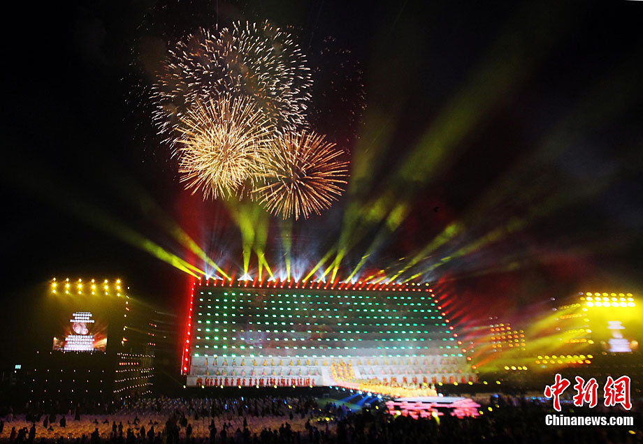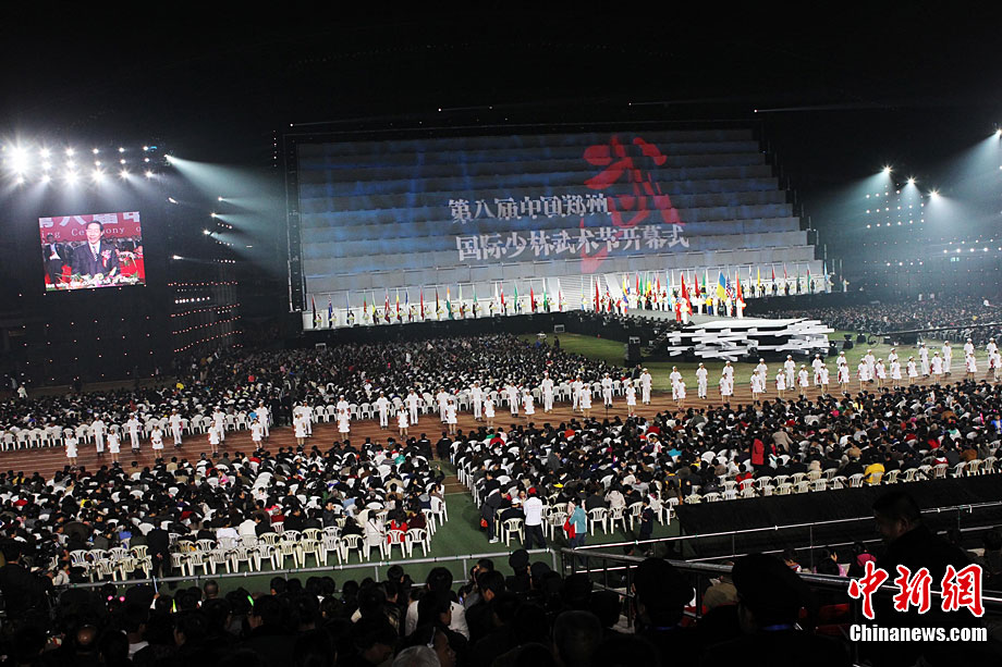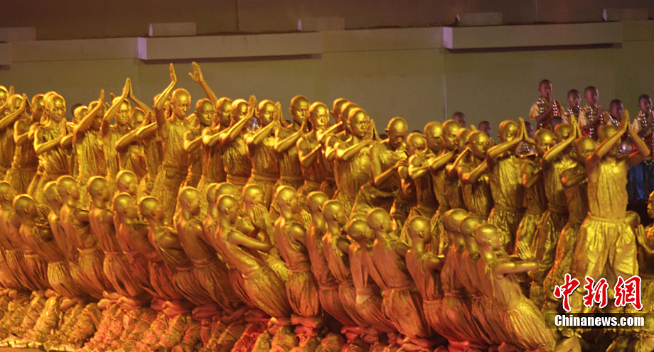 10月22日晚,“金身和尚”在國際少林武術(shù)節(jié)開幕式上表演。當(dāng)日,第八屆中國鄭州國際少林武術(shù)節(jié)在鄭州開幕。來自美國、法國、日本、及港澳臺等近60個(gè)國家和地區(qū)的1200名選手將在武術(shù)節(jié)期間同臺競技。中新社記者 王中舉 攝