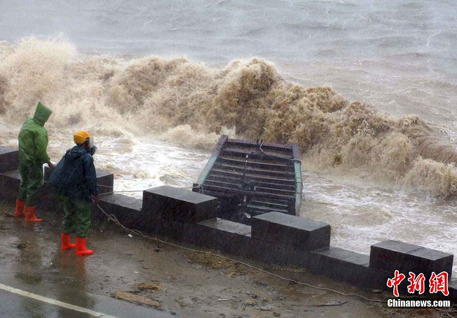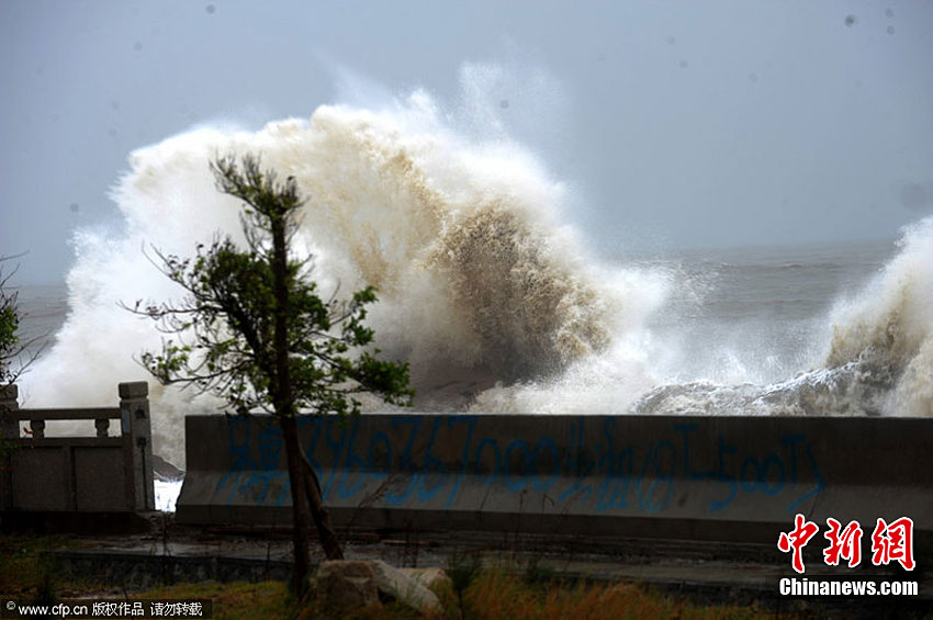 10月23日12時(shí)55分,今年第13號臺風(fēng)“鲇魚”在福建省漳浦縣六鰲鎮(zhèn)登陸,登陸時(shí)近中心最大風(fēng)力13級(風(fēng)速38米/秒),未來將向北偏西方向移動,強(qiáng)度逐漸減弱。圖片來源:CFP視覺中國 林良標(biāo) 攝