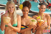 10月25日,參加正在海南三亞舉行的第60屆世界小姐總決賽的各國(guó)佳麗,在被譽(yù)為“天下第一灣”的三亞亞龍灣上演了一場(chǎng)“沙灘秀”,各國(guó)美女盡情享受三亞的陽(yáng)光、海水和沙灘。中新社記者 尹海明 攝