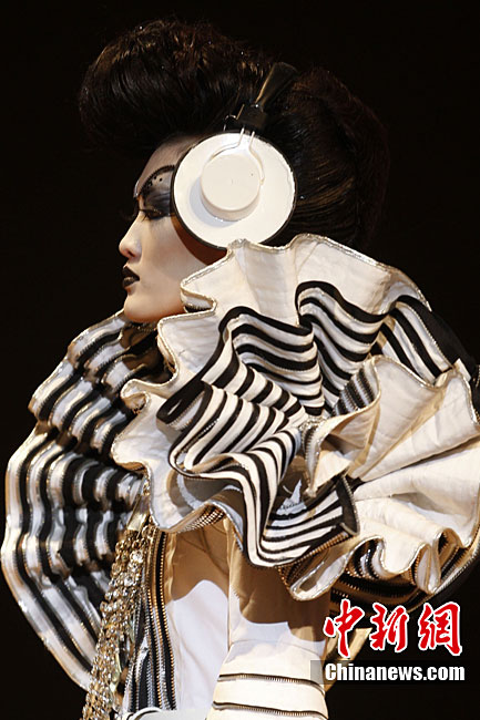 10月25日晚,第六屆“美麗盛典”中國(guó)國(guó)際時(shí)裝周彩妝造型設(shè)計(jì)大賽在北京798藝術(shù)區(qū)舉行。本屆“美麗盛典”大賽以“都市”為主題,來自中國(guó)和韓國(guó)的12位造型師與36位模特合作展示了精彩彩妝造型。中新社記者 盛佳鵬 攝