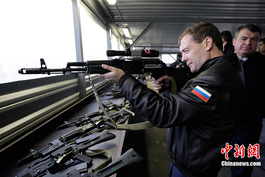 俄總統(tǒng)梅德韋杰夫端槍瞄準(zhǔn) “跟風(fēng)”普京扮硬漢