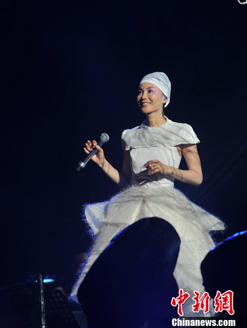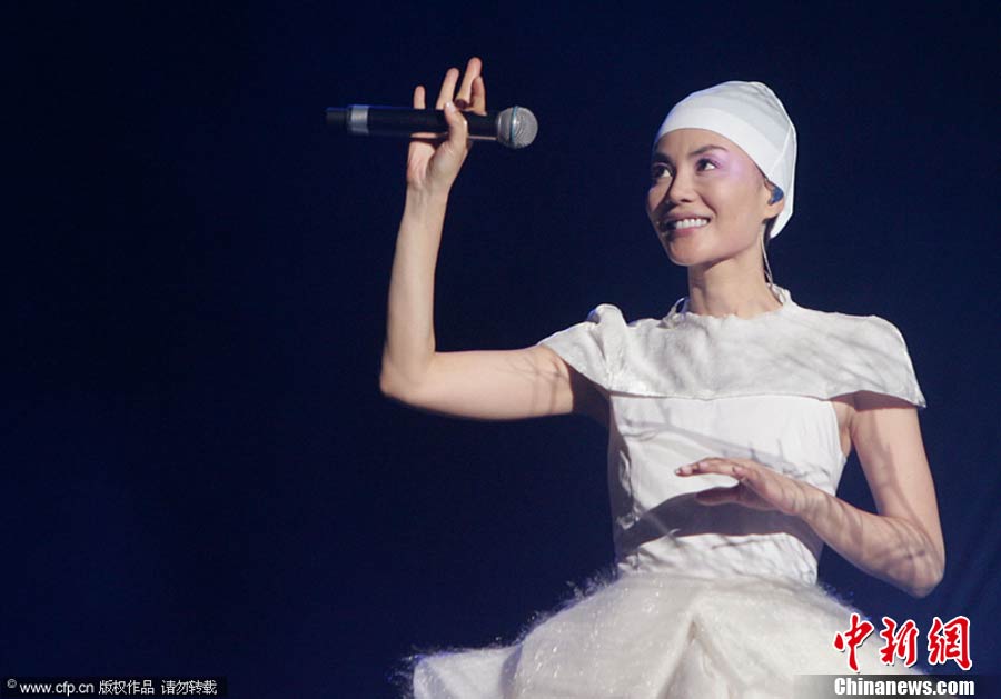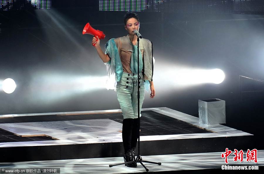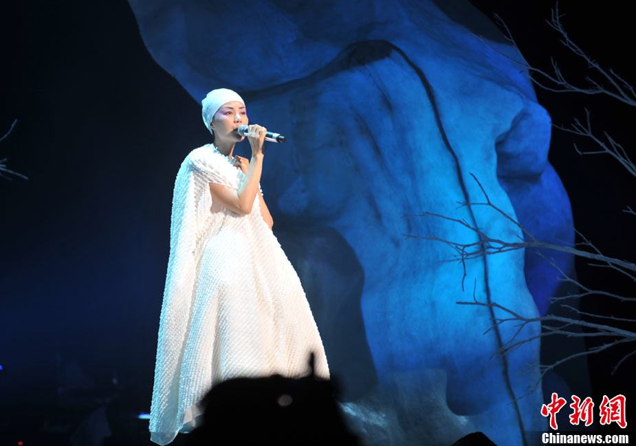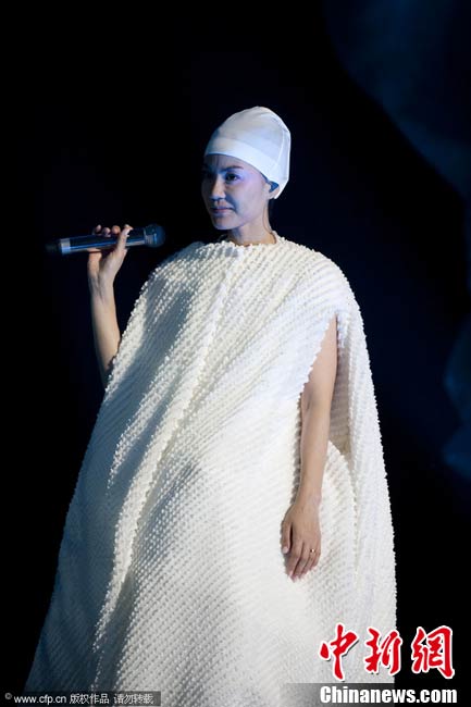 10月29日晚,暌違六年,華語樂壇天后級人物王菲在自己的家鄉(xiāng)——北京,再次開嗓,為歌迷奉獻出一場精彩絕倫的演唱會。整場演出,王菲在造型上十分搶眼,不論最開始的一身雪白,脫去外套后的蓬蓬裙顯得清新脫俗,或是中間段的摩登女郎裝扮、騎士裝、拖地長禮服,都令她展現(xiàn)不同韻味。圖片來源:CFP視覺中國