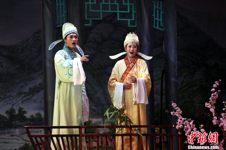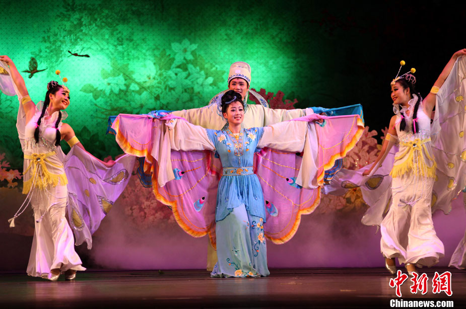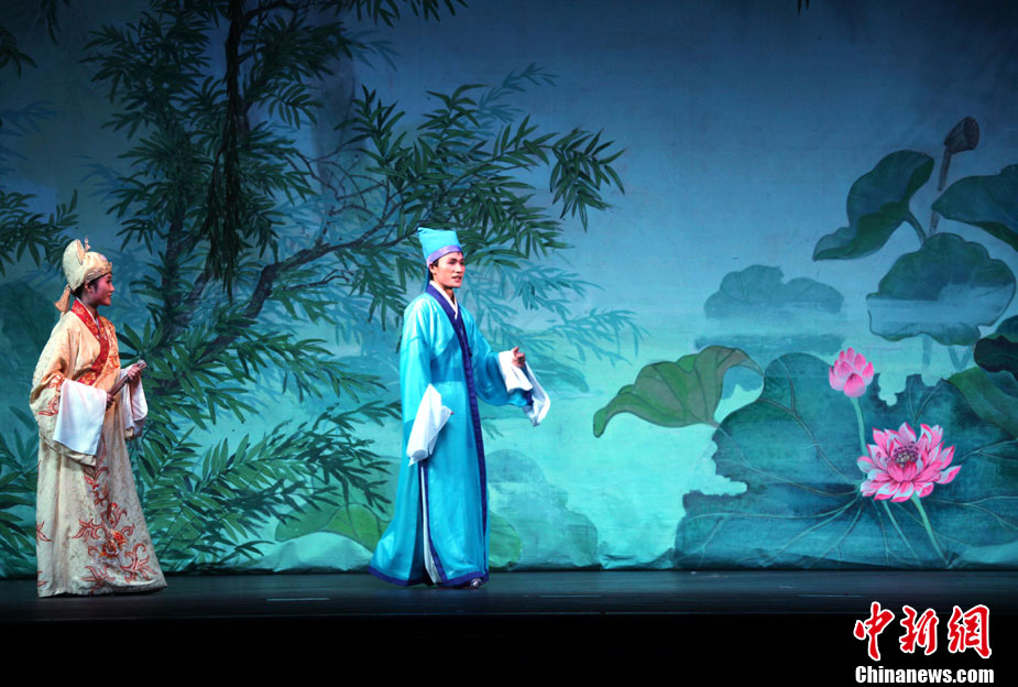 10月24日下午,朝鮮平壤大劇場(chǎng)上演其新排演的歌劇《梁山伯與祝英臺(tái)》。 中新社記者 孫自法 攝