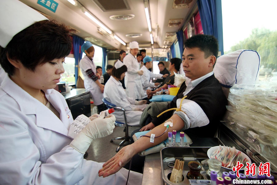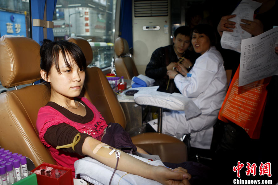 10月30日,各地市民踴躍無償獻血,應對“血荒”。圖為長春市民在義務獻血車上獻血,應對近日出現(xiàn)的“血荒”。圖片來源:CFP視覺中國