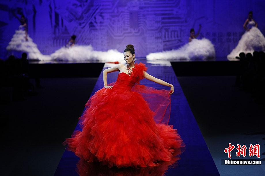 10月31日晚,“東方夏娃”托尼、李當岐、張肇達時裝藝術秀在北京舉行,這場秀是由3位在文化藝術領域幾乎沒有“交集”的大師級人物共同主創(chuàng),他們是國內(nèi)知名教育學者李當岐教授、英國頂級雕塑家托尼、杰出服裝設計師張肇達。中新社記者 盛佳鵬 攝