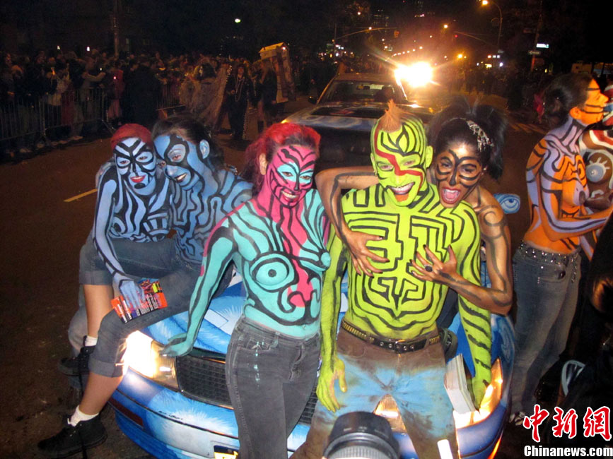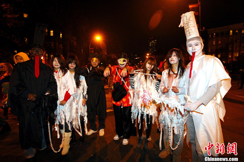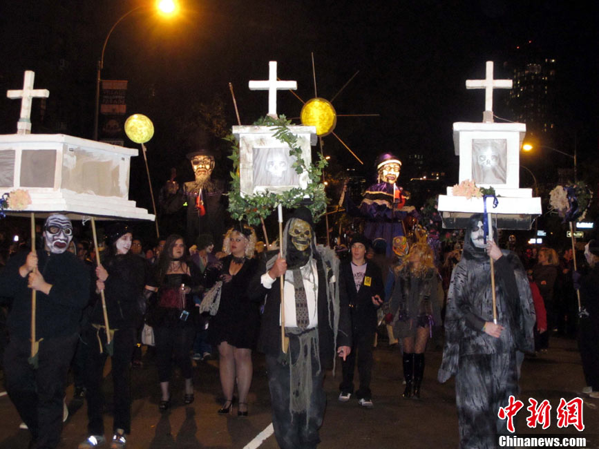 當(dāng)?shù)貢r間10月31日晚,一年一度的紐約萬圣節(jié)前夜狂歡大游行在紐約第六大道舉行,這是全世界最大的萬圣節(jié)游行。中新社記者 孫宇挺 攝