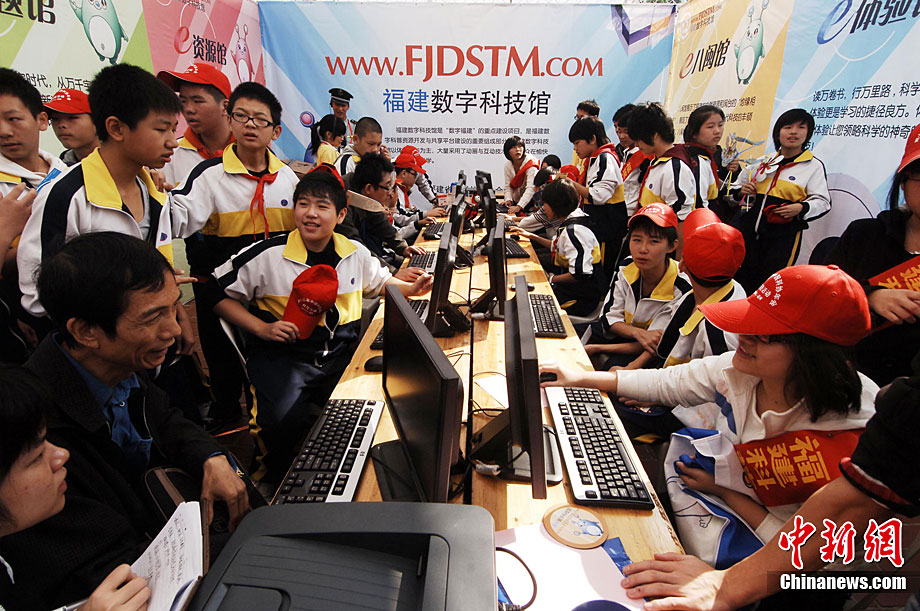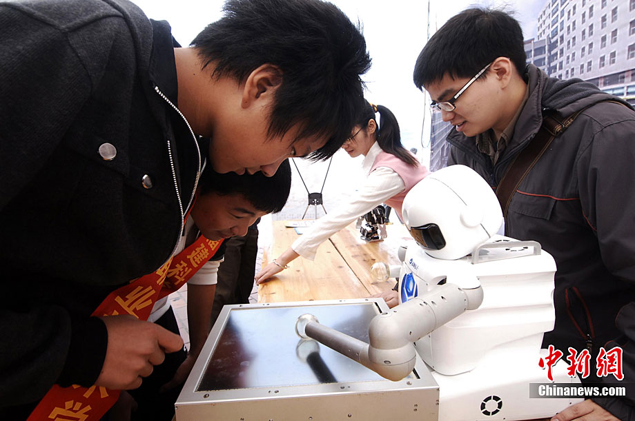 11月2日,福州科普愛好者與來自臺(tái)灣的機(jī)器人下棋。當(dāng)日,海峽兩岸科普嘉年華活動(dòng)在福州舉行,30多位臺(tái)灣科普專家攜15項(xiàng)臺(tái)灣科技成果到場(chǎng),與福州民眾一起互動(dòng)。中新社記者 王東明 攝