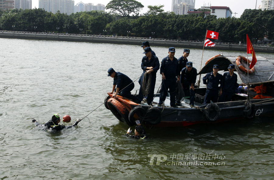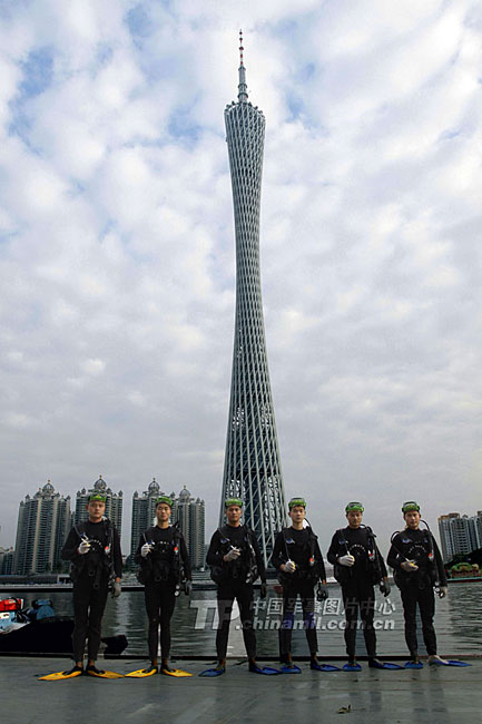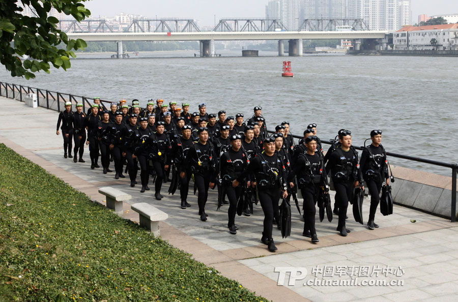 這支“蛙人”部隊(duì)是由海軍南海艦隊(duì)某支隊(duì)和防救船大隊(duì)的潛水部門分別派出共計(jì)80多位精兵強(qiáng)將組成的。作為我軍水上救援的重要力量,這支部隊(duì)多次出色完成了遠(yuǎn)洋救生、深海打撈、搶險(xiǎn)救災(zāi)和遠(yuǎn)洋測(cè)量等艱巨任務(wù),不少人是身經(jīng)百戰(zhàn)的潛水好手,其中不乏全國(guó)潛水紀(jì)錄的保持者。據(jù)安保作業(yè)副指揮員趙蹇黎介紹,此次來(lái)羊城,他們是應(yīng)總部和海軍指派,前來(lái)配合廣州市公安局水警總隊(duì),為今年的亞運(yùn)會(huì)全方位水下安保進(jìn)行全面保障。