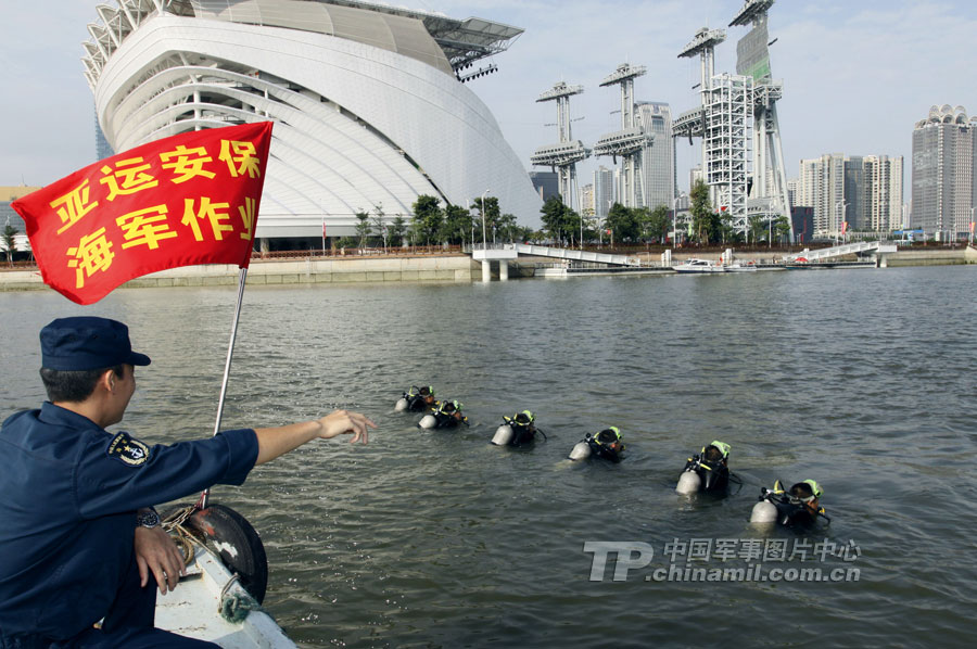 副指揮員趙蹇黎表示:“我們這支部隊(duì)在2008年已圓滿完成了對(duì)北京奧運(yùn)會(huì)、殘奧會(huì)水下安檢任務(wù),這是我們第二次參與大型運(yùn)動(dòng)會(huì)水下安保工作。雖然此次作業(yè)水域面積大、水質(zhì)差、水流急、水下目標(biāo)復(fù)雜、能見(jiàn)度差等諸多不利因素,但官兵們一致認(rèn)為,不管困難有多大,任務(wù)有多重,服務(wù)亞運(yùn)是一次光榮而艱巨的政治任務(wù),我們將貫徹落實(shí)上級(jí)指示,提高認(rèn)識(shí),盡心盡責(zé),保證圓滿順利地完成各項(xiàng)任務(wù)!”