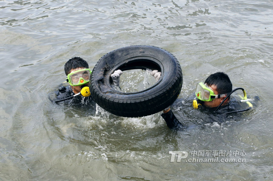 “水下就是戰(zhàn)場(chǎng),安檢就是打仗”、“不怕流血流汗,確保水下安檢萬(wàn)無(wú)一失!边@是蛙人官兵們的共同心聲。