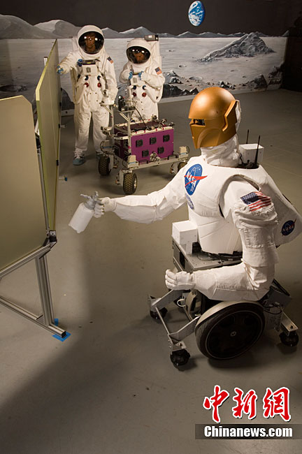 全球首個(gè)太空機(jī)器人(左)定于11月3日跟隨美國(guó)“發(fā)現(xiàn)”號(hào)航天飛機(jī)前往國(guó)際空間站,在那里度過(guò)自己的“一生”,它將在國(guó)際空間站完成一系列測(cè)試工作。據(jù)機(jī)器人設(shè)計(jì)者表示,它將在國(guó)際空間站完成一系列測(cè)試工作,但它的“后代”或許可以承擔(dān)太空行走、外星探險(xiǎn)等更加復(fù)雜、危險(xiǎn)的任務(wù)。