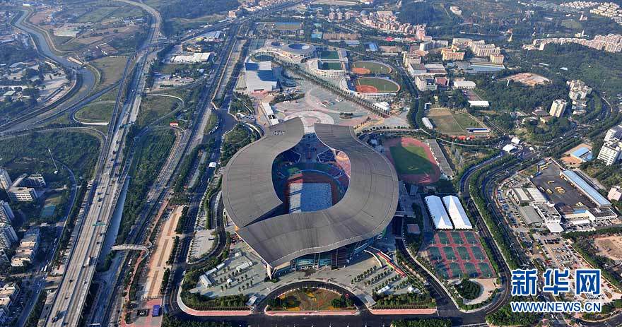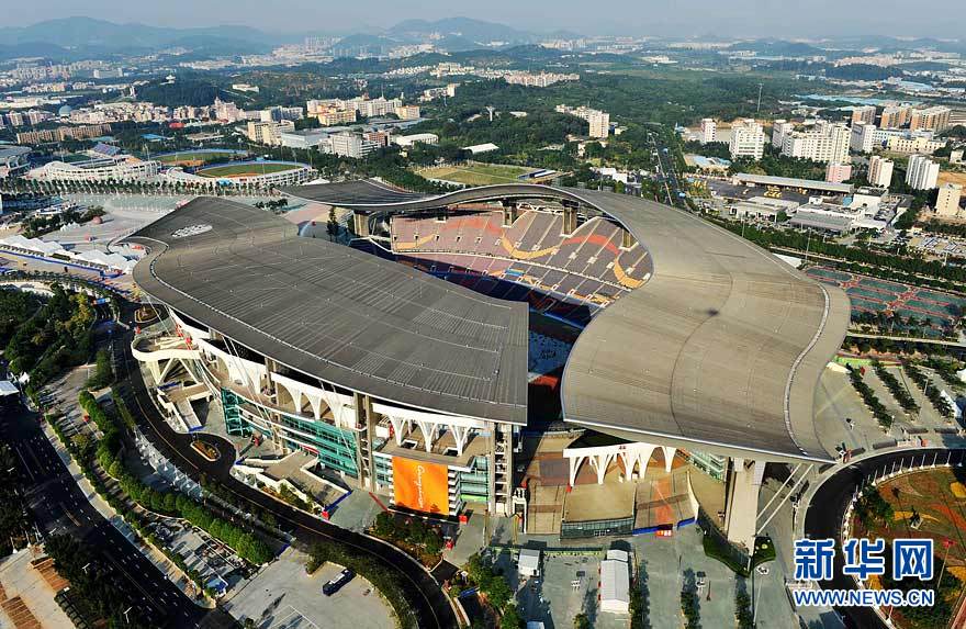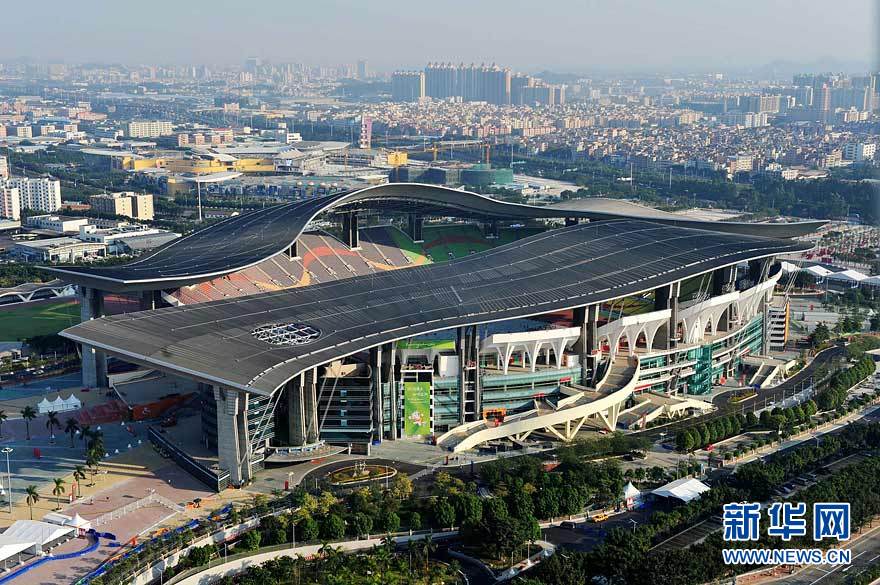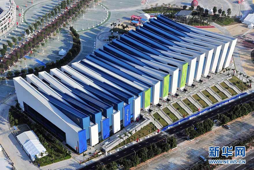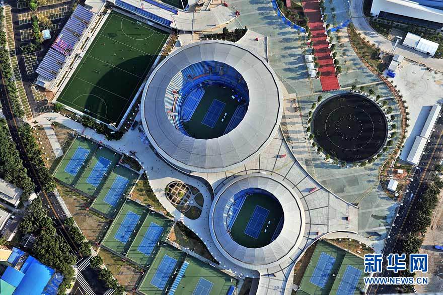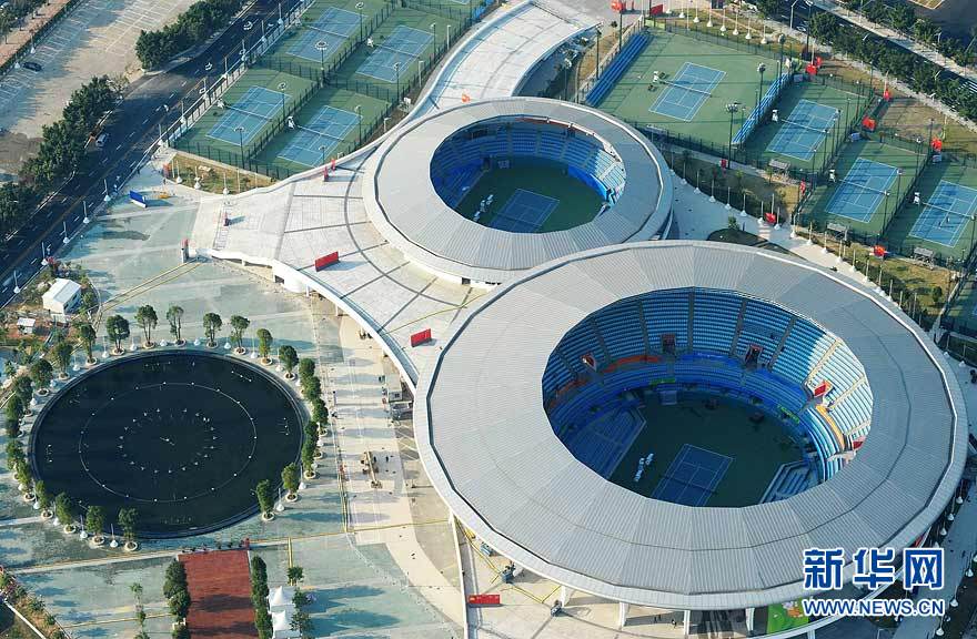 圖為航拍的廣東奧體游泳館(攝于10月29日)。在廣州亞運(yùn)會(huì)期間,廣東奧林匹克體育中心場館群將舉行田徑、游泳、射擊、網(wǎng)球、棒球等項(xiàng)目的比賽。劉大偉 攝 圖片來源:新華網(wǎng)