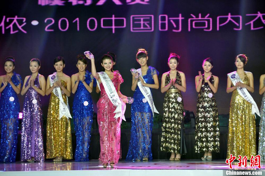 11月5日,“2010中國時(shí)尚內(nèi)衣模特決賽暨頒獎(jiǎng)盛典”在湖南張家界武陵源風(fēng)景區(qū)魅力湘西國際文化廣場激情上演。賽事以T臺(tái)內(nèi)衣 秀為主體內(nèi)容貫穿全場,結(jié)合VCR及現(xiàn)場表演等多元方式演繹“水晶之戀”、“魅影霓裳”等多個(gè)主題內(nèi)容。30強(qiáng)內(nèi)衣佳麗為觀眾奉獻(xiàn)了一場時(shí)尚性、大眾性、前瞻性的內(nèi)衣視覺盛宴。經(jīng)過最后角逐,來自武漢紡織大學(xué)的大三女生張恩摘得桂冠,張馨月、伍思賢分獲亞軍、季軍。中新社發(fā) 吳勇兵 攝