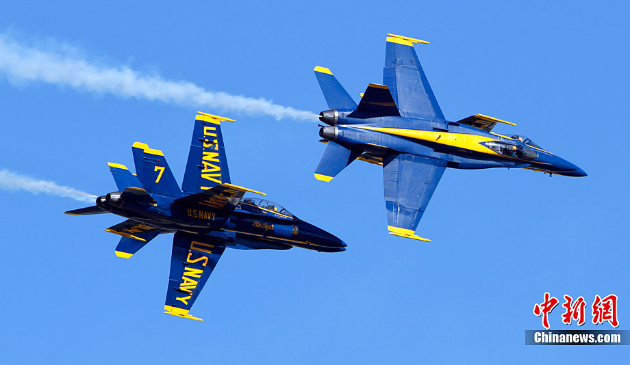 當(dāng)?shù)貢r間11月5日,美國邁阿密近郊的霍姆斯帝德空軍儲備基地為當(dāng)?shù)鼐用窈陀慰蜕涎萘司式^倫航空飛行表演。世界上最優(yōu)秀的特技飛行表演隊之一,同時也是目前世界上唯一一支屬于海軍航空兵的飛行表演隊--美國海軍“藍(lán)天使”飛行表演隊駕駛f/a-18“大黃蜂”戰(zhàn)斗機(jī),翱翔藍(lán)天,上演令人驚嘆,眼花繚亂的空中特技。