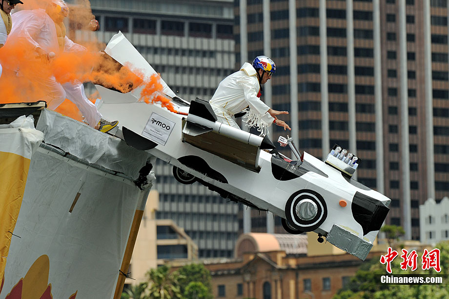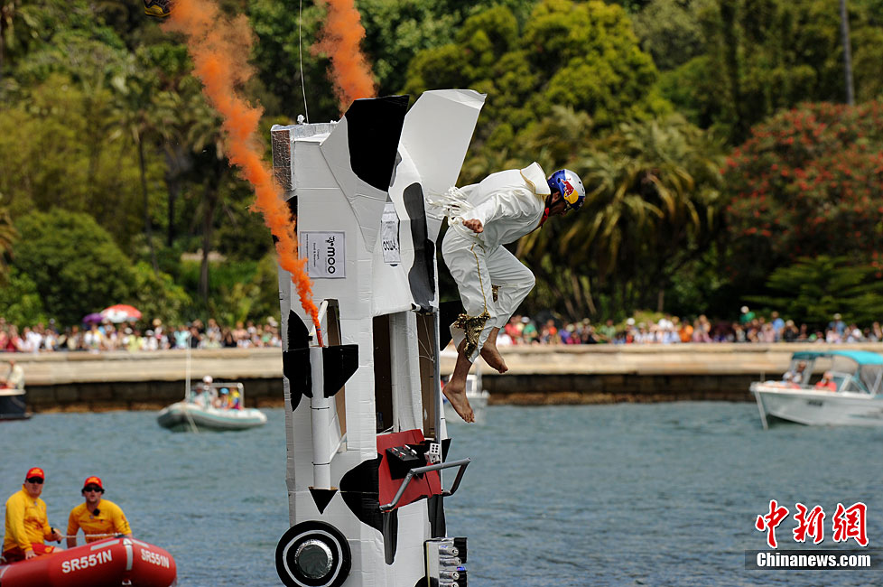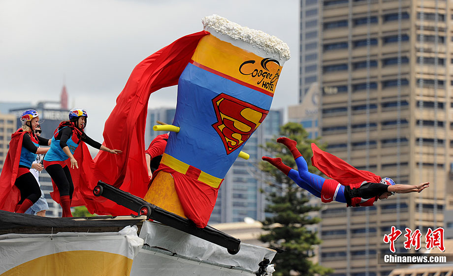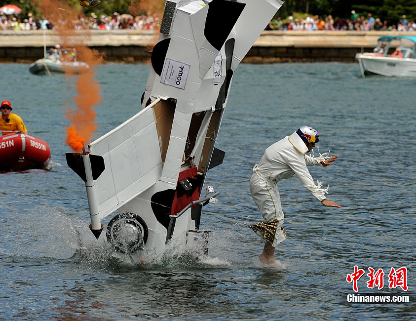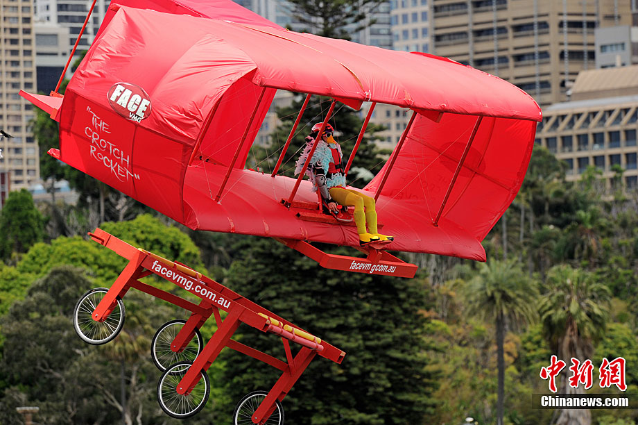 11月7日,在澳大利亞悉尼舉行了搞笑的紅牛杯“鳥人”大賽。據(jù)報道,這項賽事1991年起源于奧地利維也納,參賽選手自制人力飛行器從高臺起飛并最終躍入水中,飛行距離最遠者獲勝。