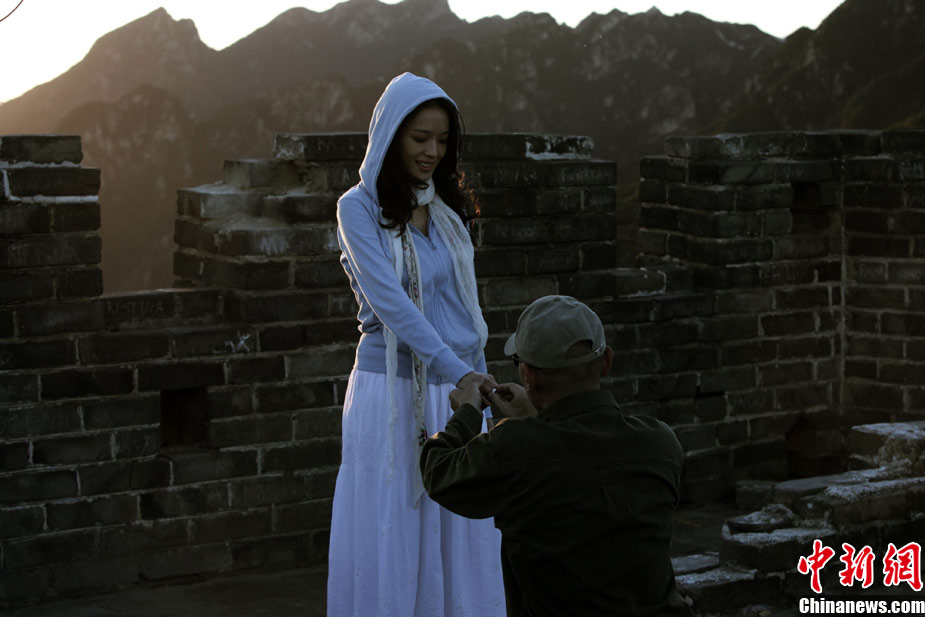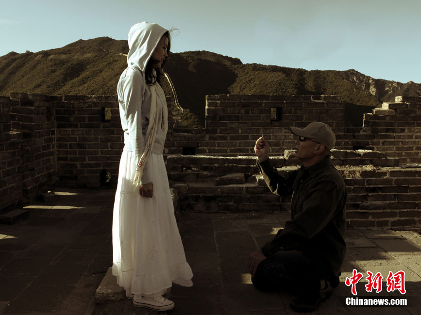 由華誼兄弟出品,馮小剛導(dǎo)演,王朔、馮小剛聯(lián)合編劇的《非誠勿擾2》將于12月22日上映。馮氏賀歲電影時隔兩年卷土重來,幽默情調(diào)不變,浪漫情懷升溫。近日,華誼兄弟發(fā)布了秦奮向梁笑笑求婚的劇照。長城上夕陽下,葛優(yōu)單膝跪地手舉鉆戒,舒淇笑臉相迎,在《非誠勿擾2》中上演了一場最浪漫的求婚。據(jù)悉,為了完成這場求婚戲,全劇組連續(xù)拍攝兩天才達(dá)到馮小剛導(dǎo)演的要求。 中新社發(fā) fcwr 攝