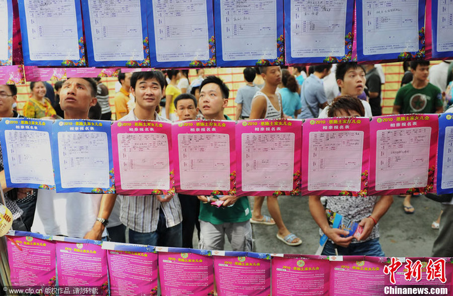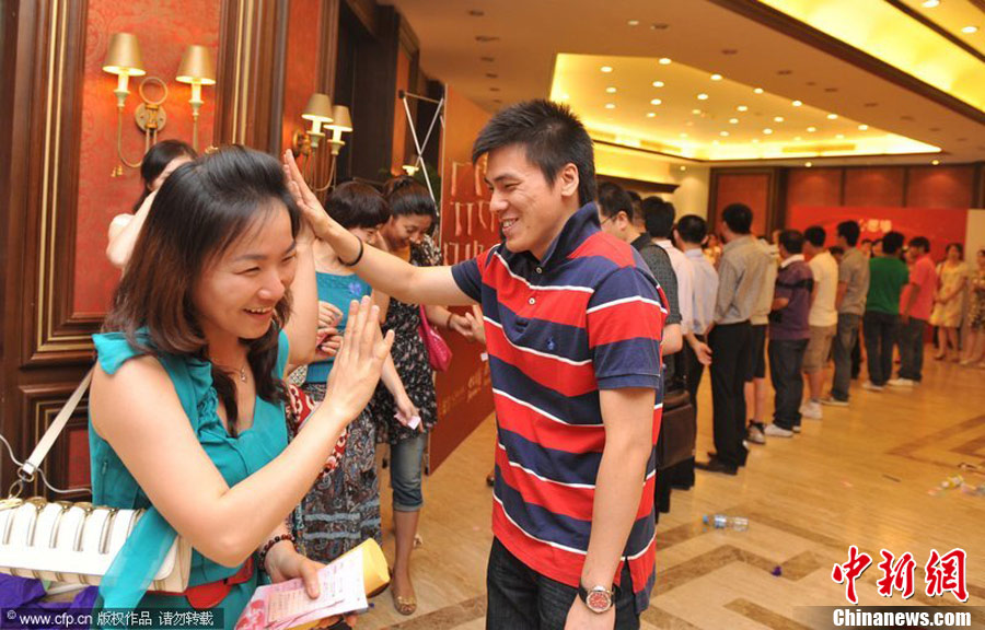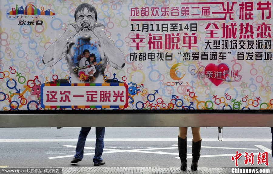 2010年11月11日,又是一個(gè)光棍節(jié),許多剩男剩女們?yōu)榱恕懊摴狻倍来烙麆?dòng),單身一族里也有不少人搖旗吶喊要“脫光”,征婚、相親、交友、街頭尋人……這些年年上演的“脫光行動(dòng)”形形色色,愿每個(gè)人找到自己的真愛。圖為2010年10月1日,“愛的就是你”相親大會(huì)在廣西南寧青秀山風(fēng)景區(qū)舉辦,該活動(dòng)吸引了來自全區(qū)近萬名單身男女參加。何云攝 圖片來源:CFP視覺中國
